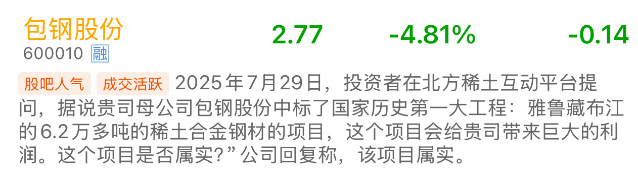$包钢股份(SH600010)$ 今年稀土又是涨价,公司又中标雅下水电,业绩应该不错吧,虽然现在市盈率高点,但三季报业绩一出来,市盈率就会下去吧