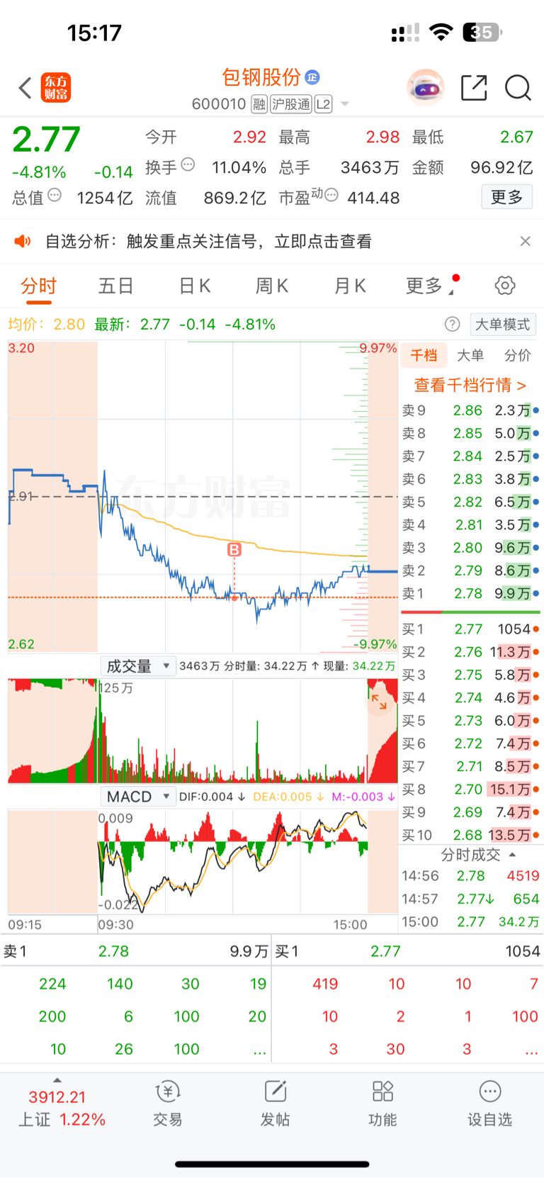 $包钢股份(SH600010)$ 今天抄底了,不知道对不对