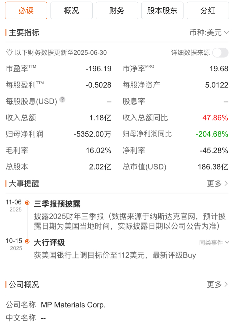 老美mp稀土公司270人员工,稀土产业不完善,竟然市值190亿美元了,看看我们垄
