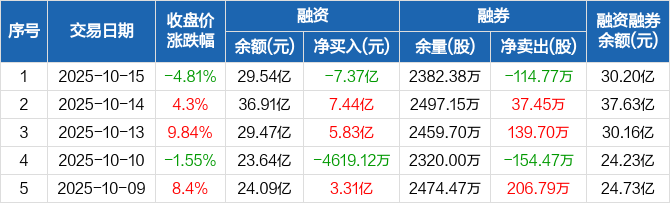 包钢股份融资融券信息显示,2025年10月15日融资净偿还7.37亿元;融资余额29.54亿元,较前一日下降19.97%。