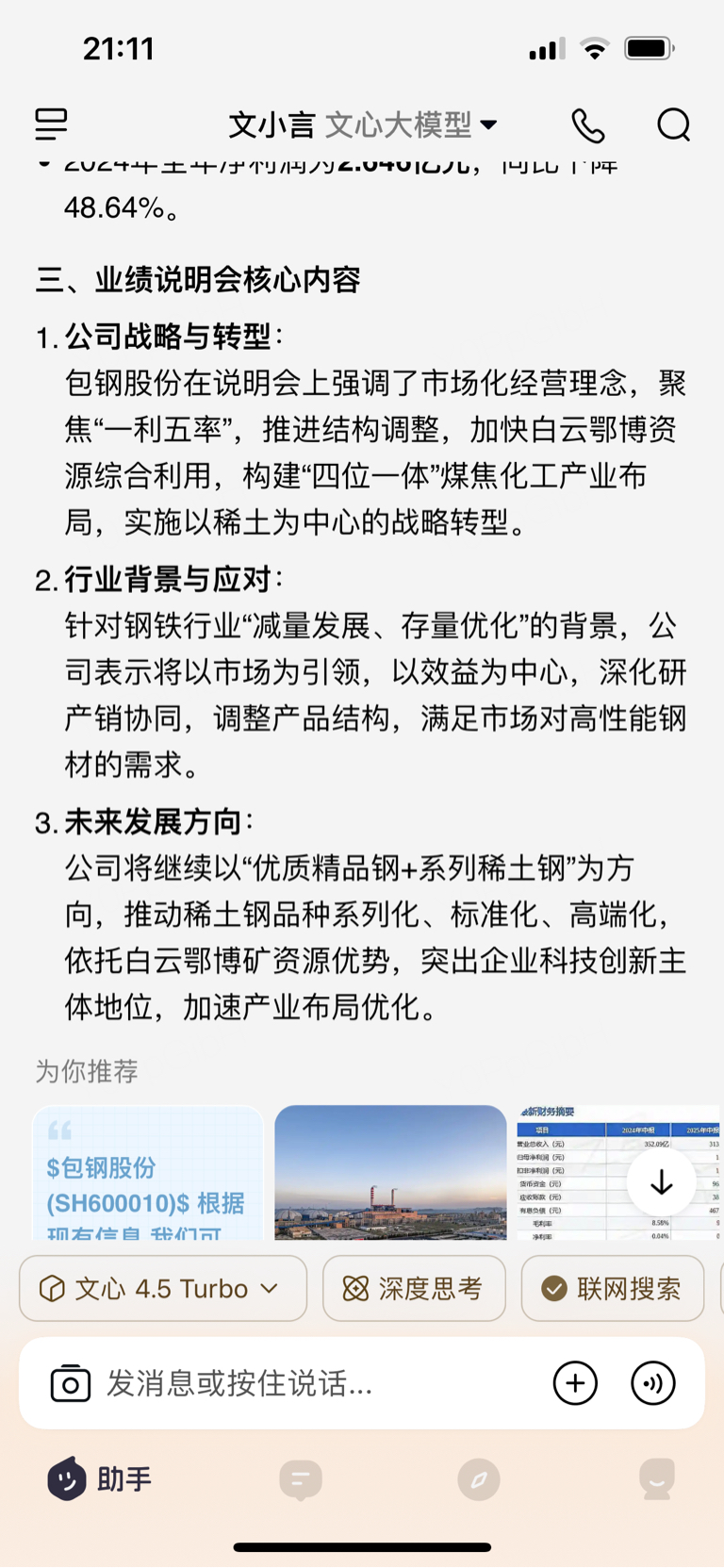 $包钢股份(SH600010)$ AI提供的今天下午的业绩说明会内容