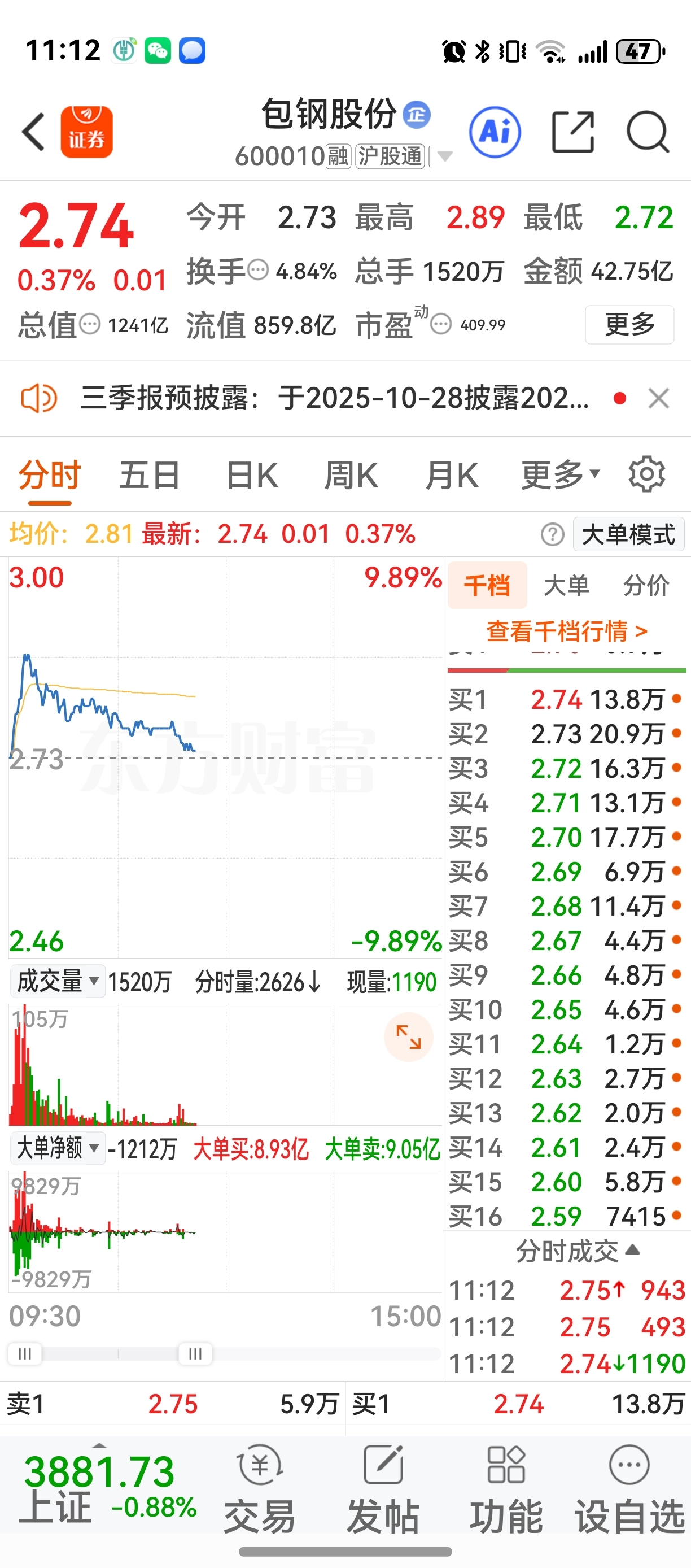 $包钢股份(SH600010)$ 哈哈做T的兄弟们是不又想接了?273可小回补!