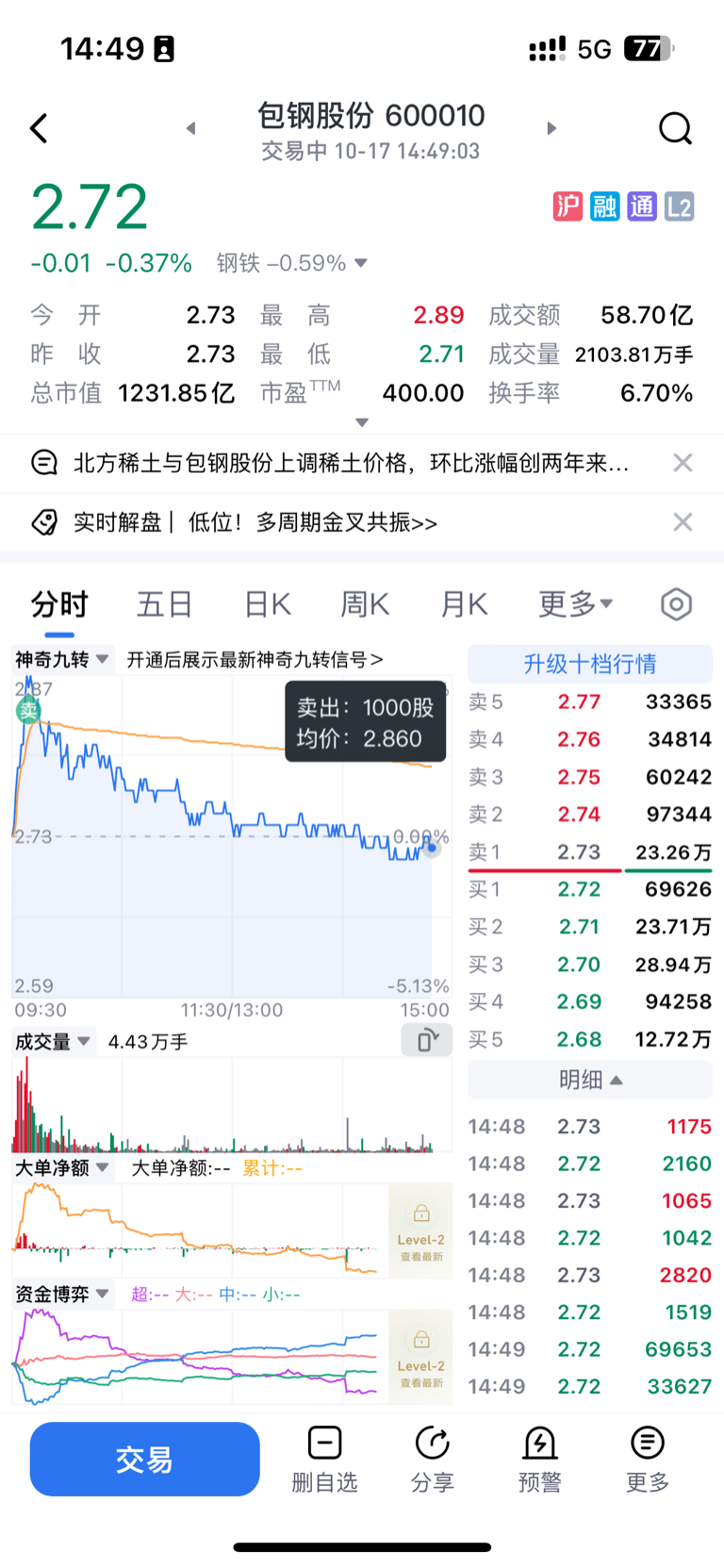 $包钢股份(SH600010)$ 2.86 清仓跑路