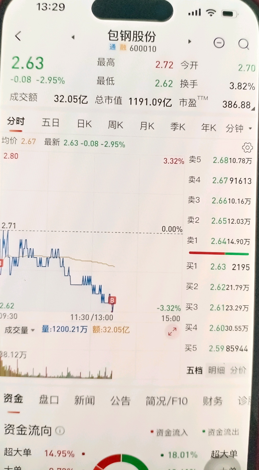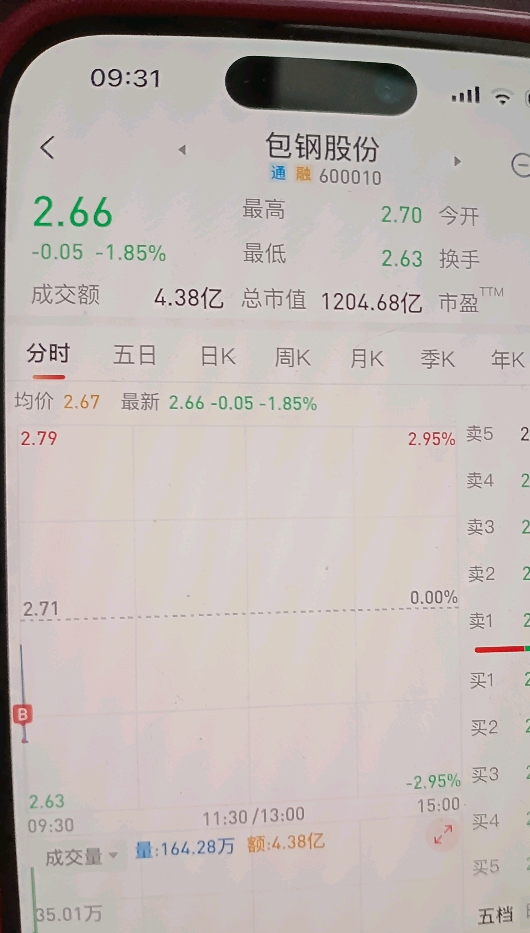 $包钢股份(SH600010)$ 今天大概率开始补缺口了,围绕2.7附近宽幅震荡,操作计划是2.78开始分批卖,2.66以下分批买。
