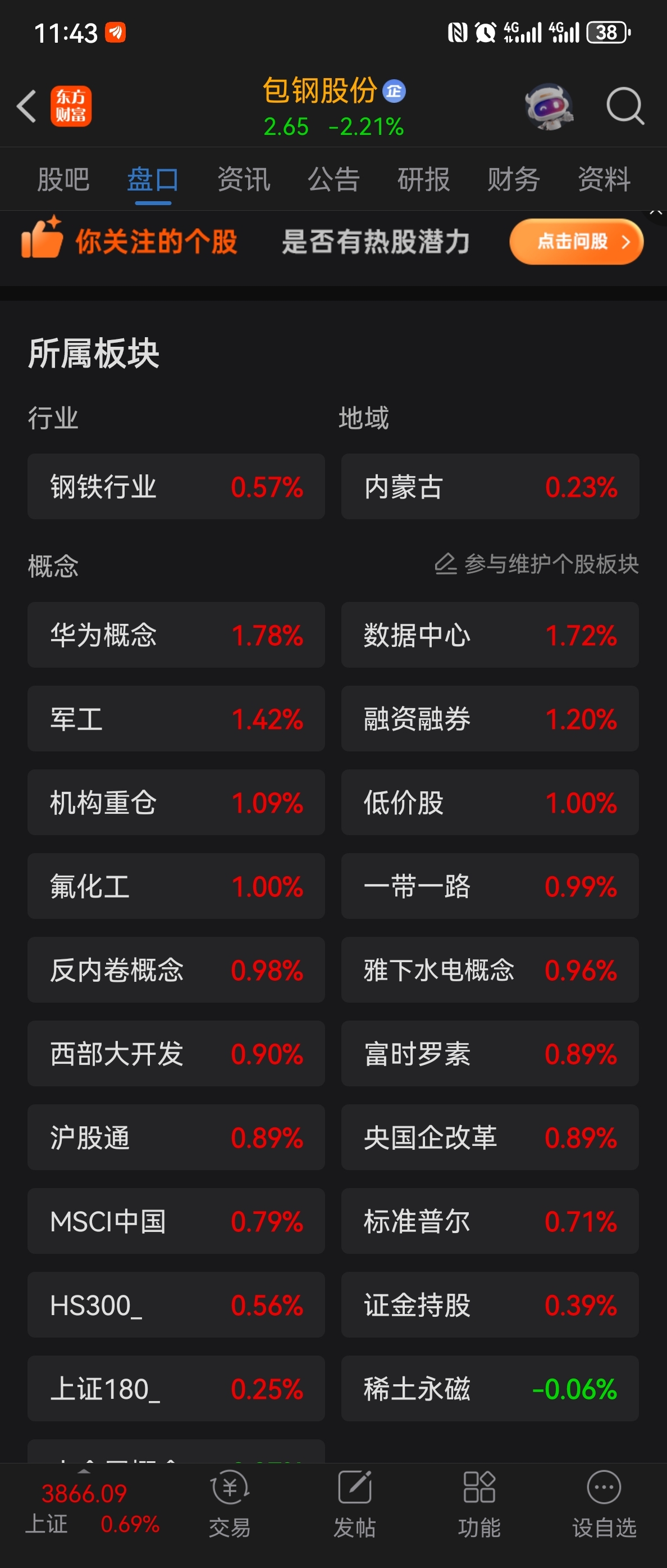 $包钢股份(SH600010)$ 这还跌2个点 这明显是压着不让涨 故意跌