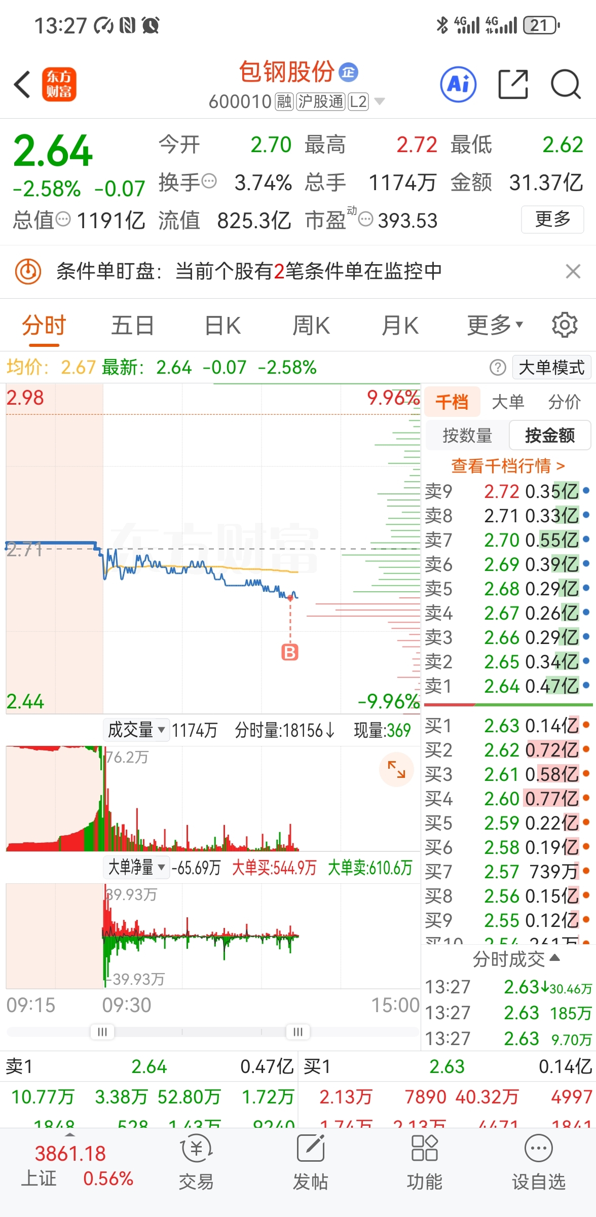 $包钢股份(SH600010)$ 大钢子,我大概还能再2.45和2各补仓1/3。你要是能直接跌破我就认了