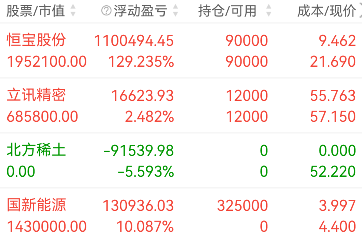 $北方稀土(SH600111)$:稀土资源+战略金属+新能源材料+人形机器人。全球轻稀土龙头,掌控国内70%开采配额。政策端,稀土出口管制强化定价权,新兴需求如特斯拉人形机器人磁组件打开空间。10月13日一度涨停,随后股价接连向下回调,考虑到贸易这个方向周末已经有明显的缓和迹象,稀土作为贸易反制品种,此处人气迅速下降,不具备更高的博弈价值,卖出清仓。