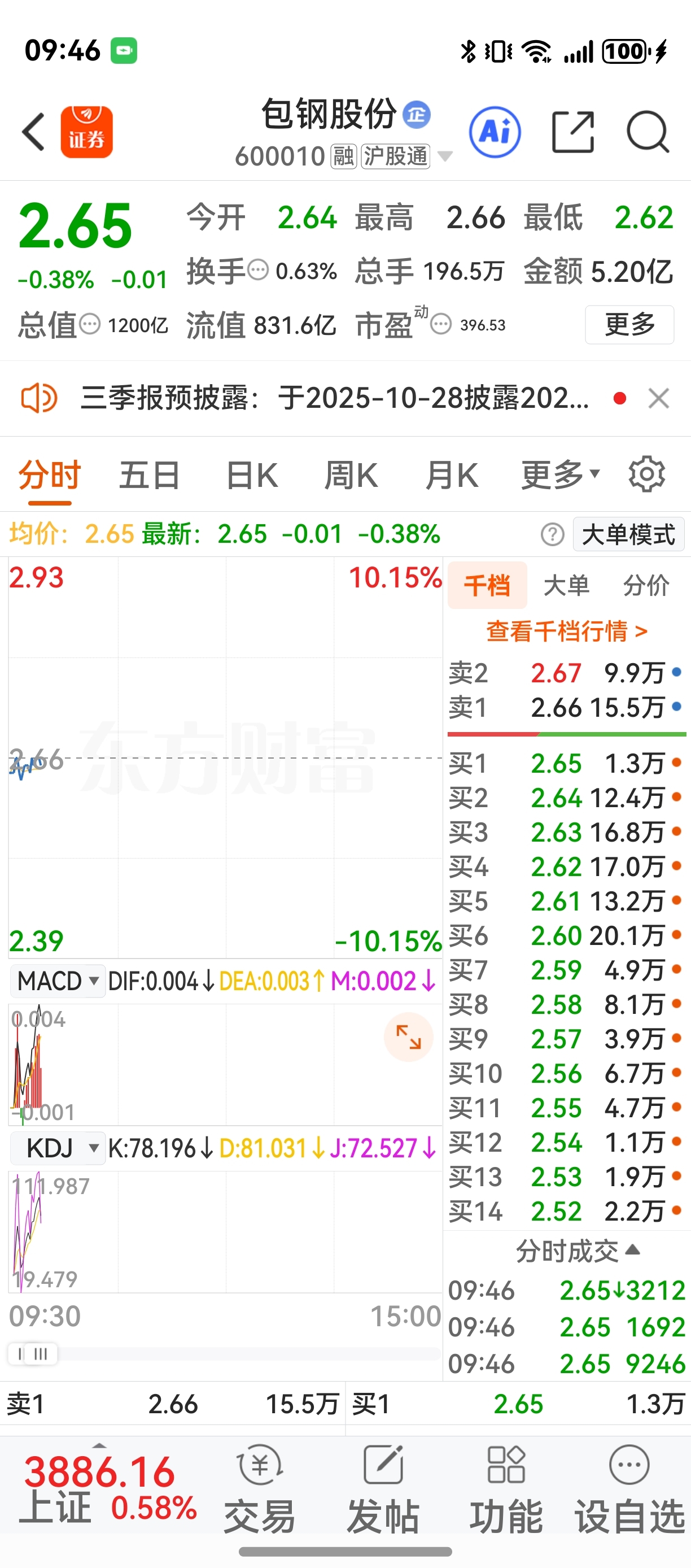 今天小包暂无操作计划!预测收盘价2.61上下一分!