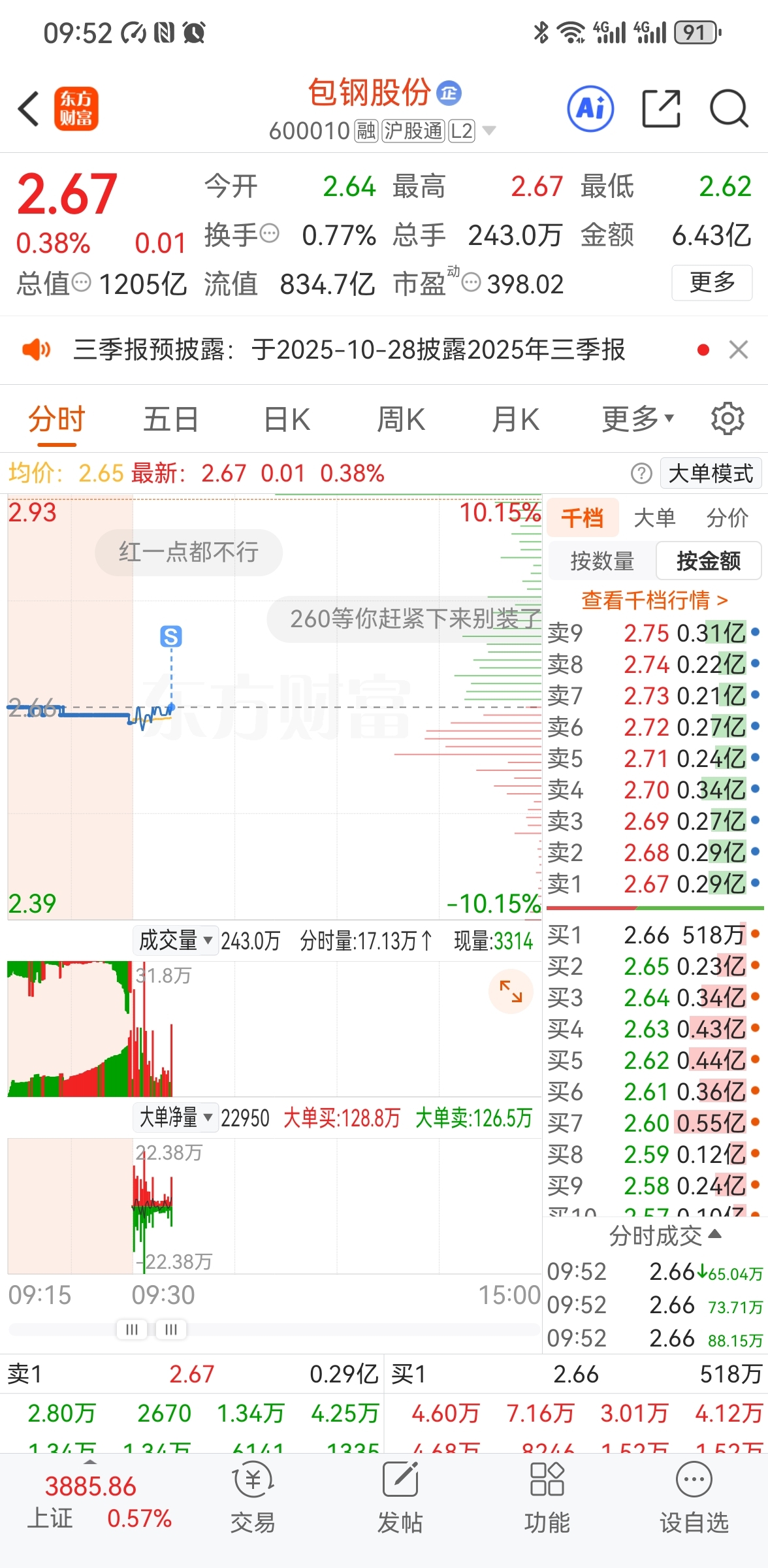 $包钢股份(SH600010)$ 我卖了主力可以拉了