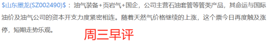 $山东墨龙(SZ002490)$:石油天然气装备+页岩气+绿色冶金+国企改革。这家公司本质上是家主营石油钻采机械的能源装备企业,产品线覆盖油管、套管这些油气开采的必需品。日K线今天高开该走继续涨停,因为油价波动、页岩气概念的高涨,这个票被游资拿出来再度炒作一番,之前就出现过因为伊以冲突推升油价预期而连续涨停的情况,这些都是事件驱动型的短期行情,来得快去的也快,注意快进快出。