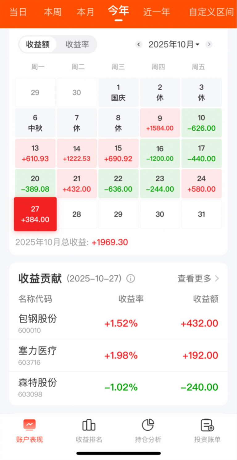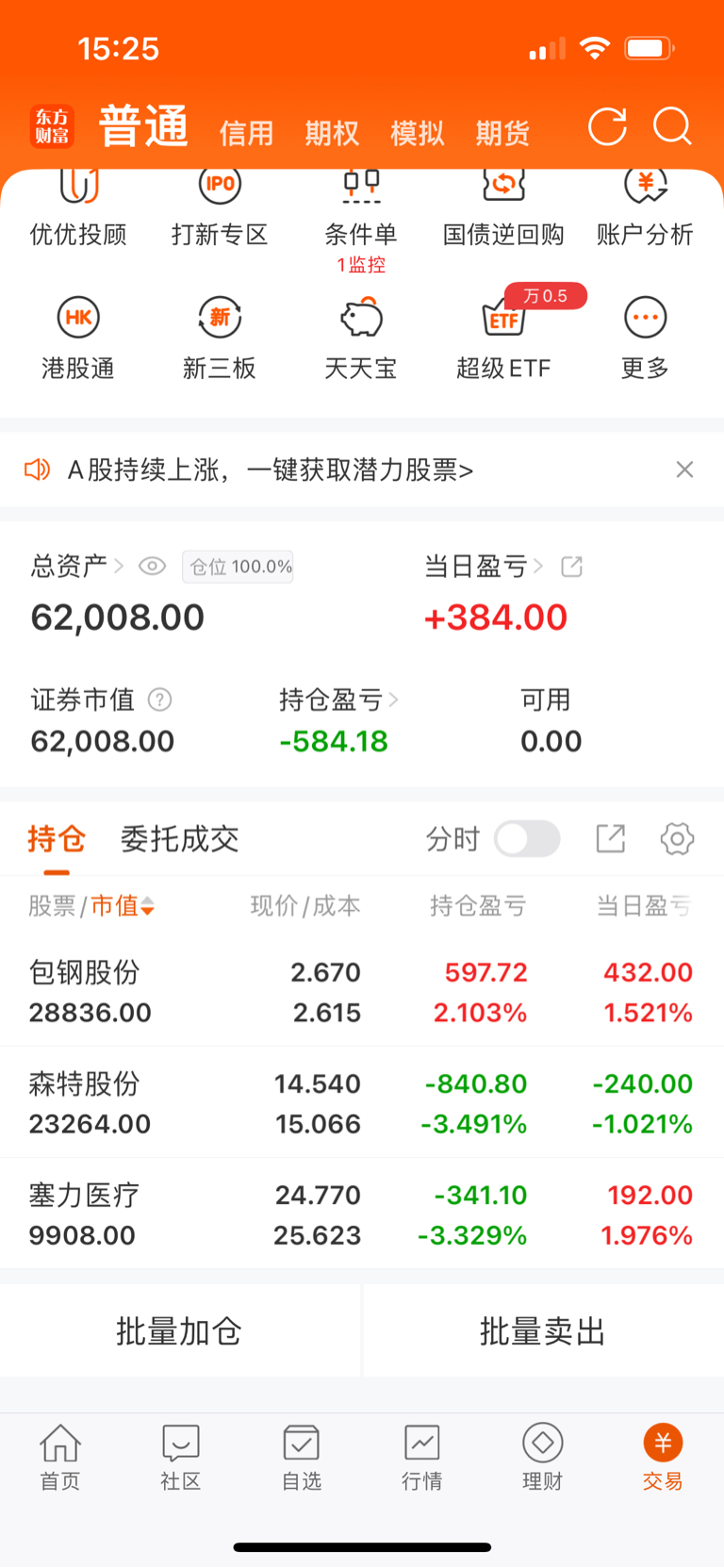 指数接近4000点,情绪一片大好,但是个股分化严重,有很多历史新高,也有很多依然趴着不动,我的持仓就属于后者。我拿的时间不长没啥发言权倒是,今天包钢依然织布一天,啥时候起来不知道,不过下不去也没啥问题,继续拿着。小7那边依然更精彩,螺纹触底反弹、碳酸锂依然强势,今日顺利达成年度10万的盈利目标,继续稳稳拿