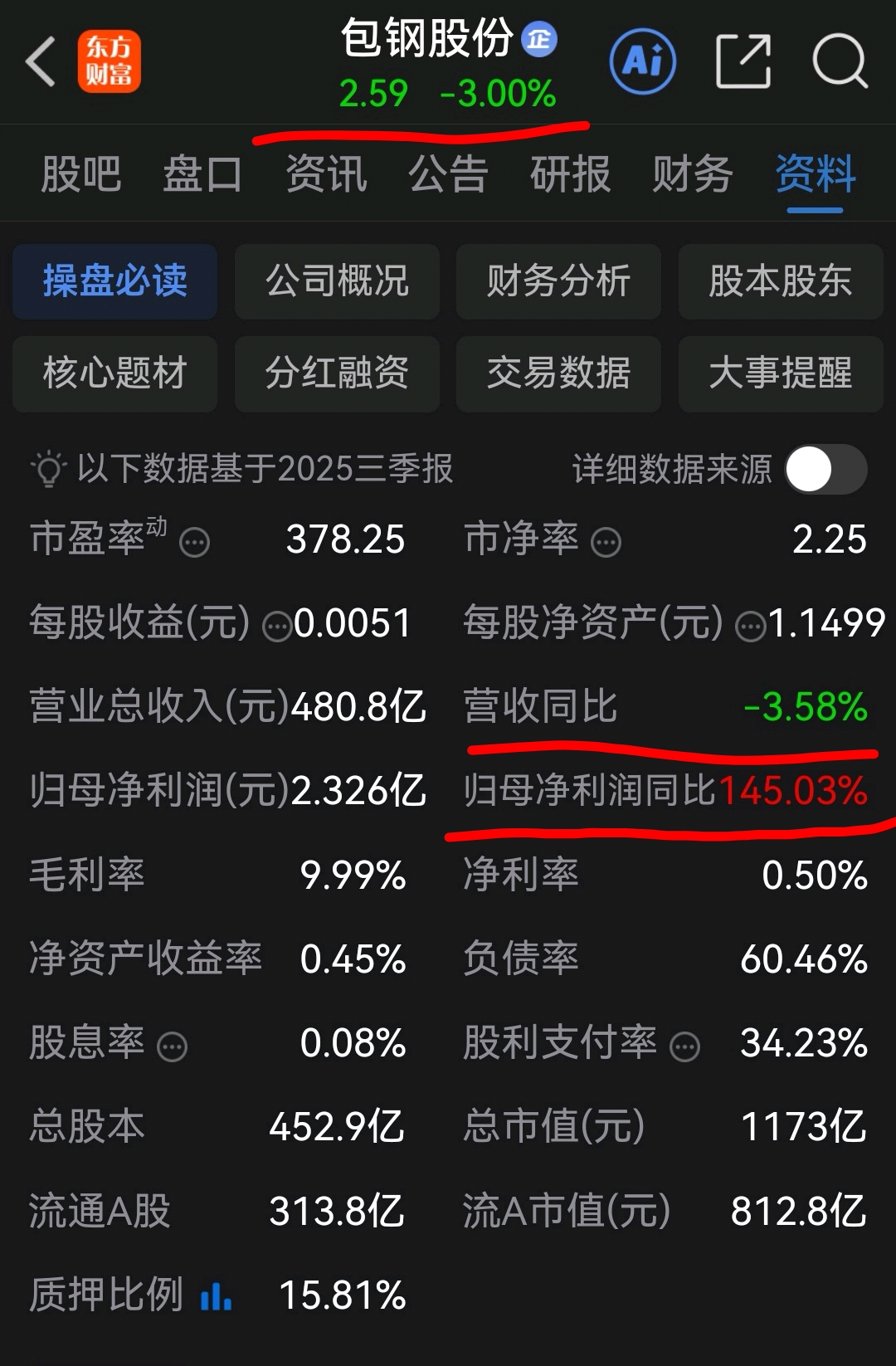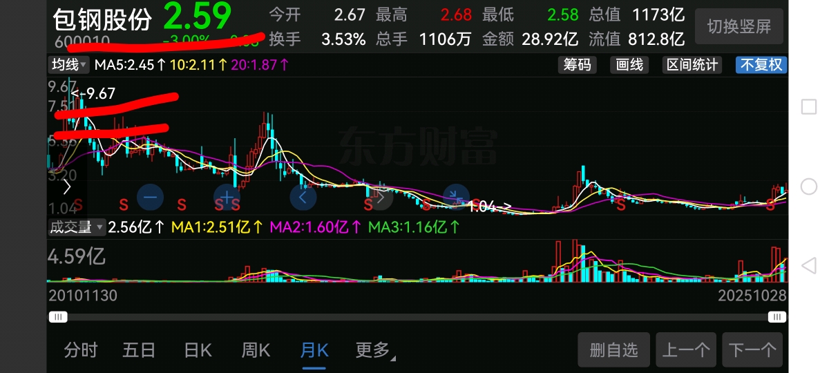 包钢股份(600010)现价2.59元/股!