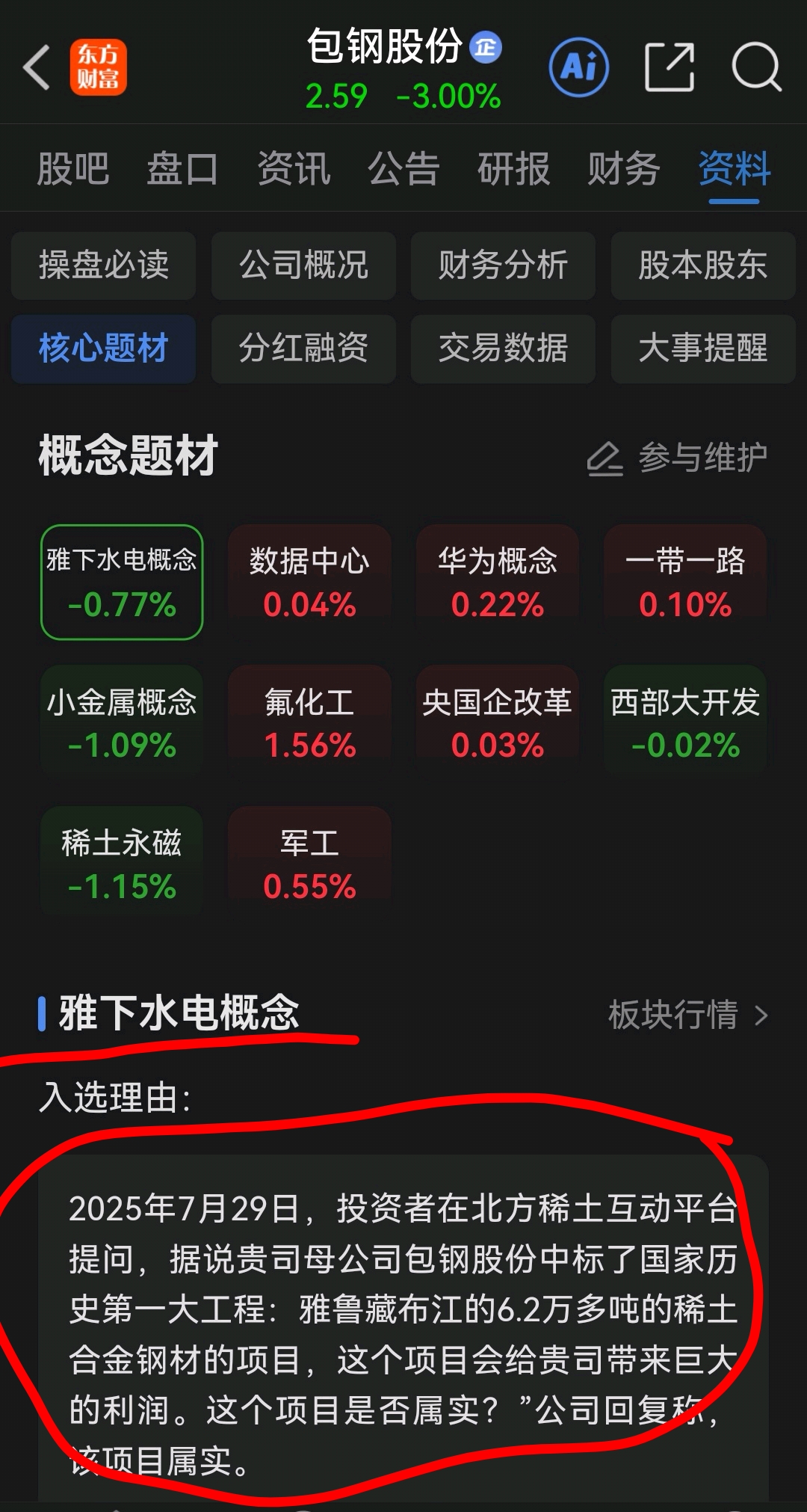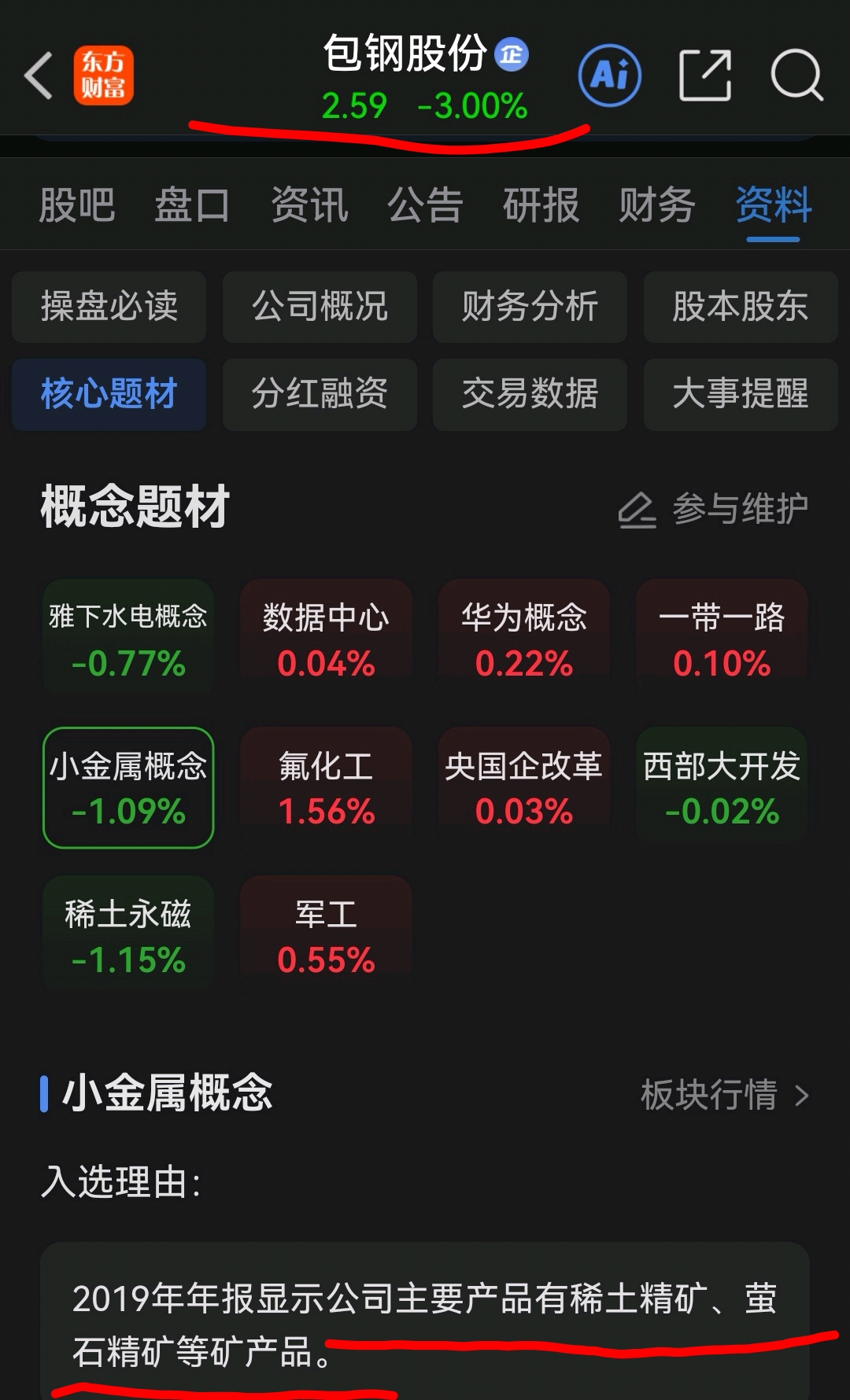 包钢股份(600010)现价2.59元/股!资源!稀土精矿资源!国家战略稀土稀缺