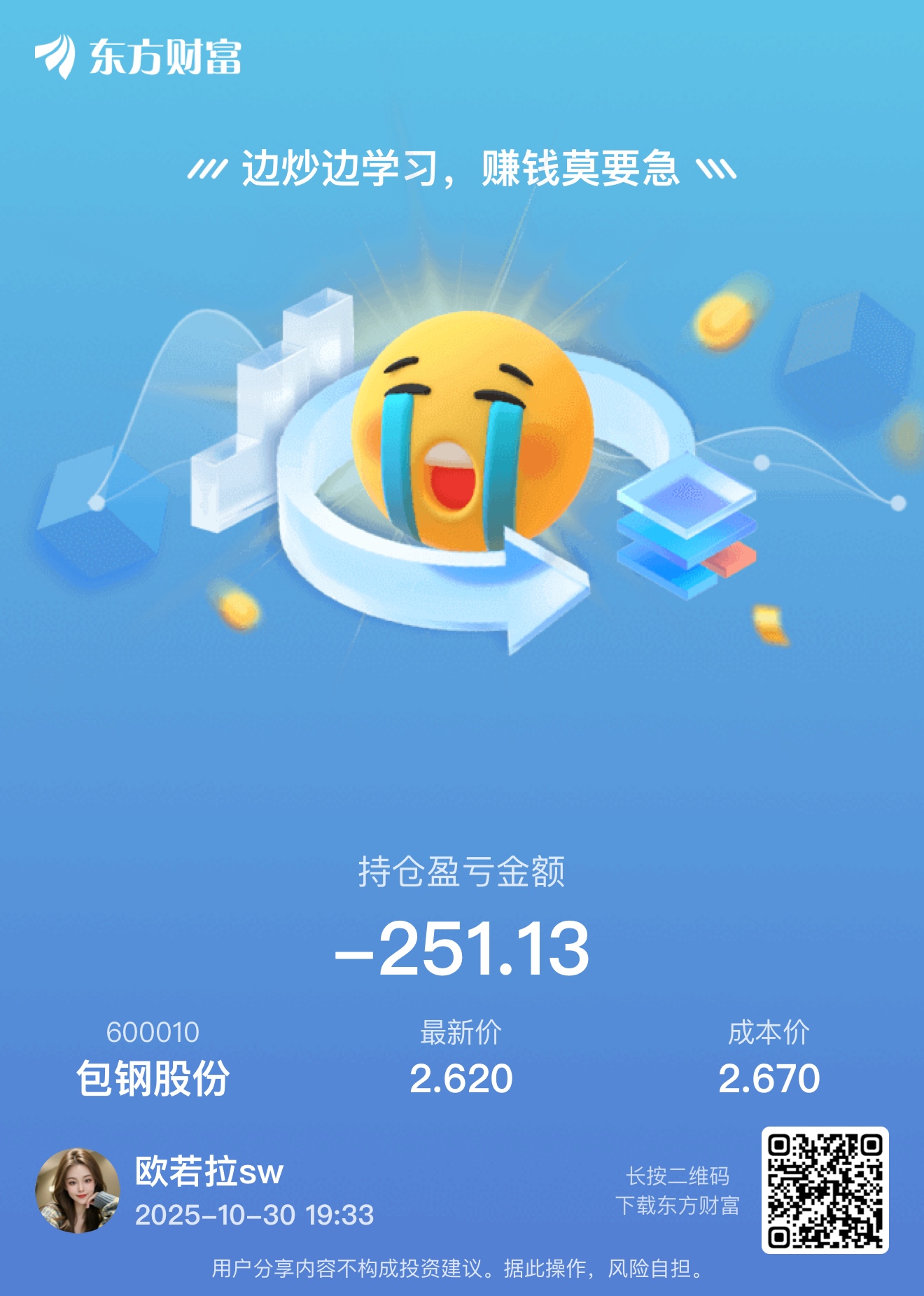 一直不停的加仓,现在把这两个月盈利的几千块都奉献了倒亏还
