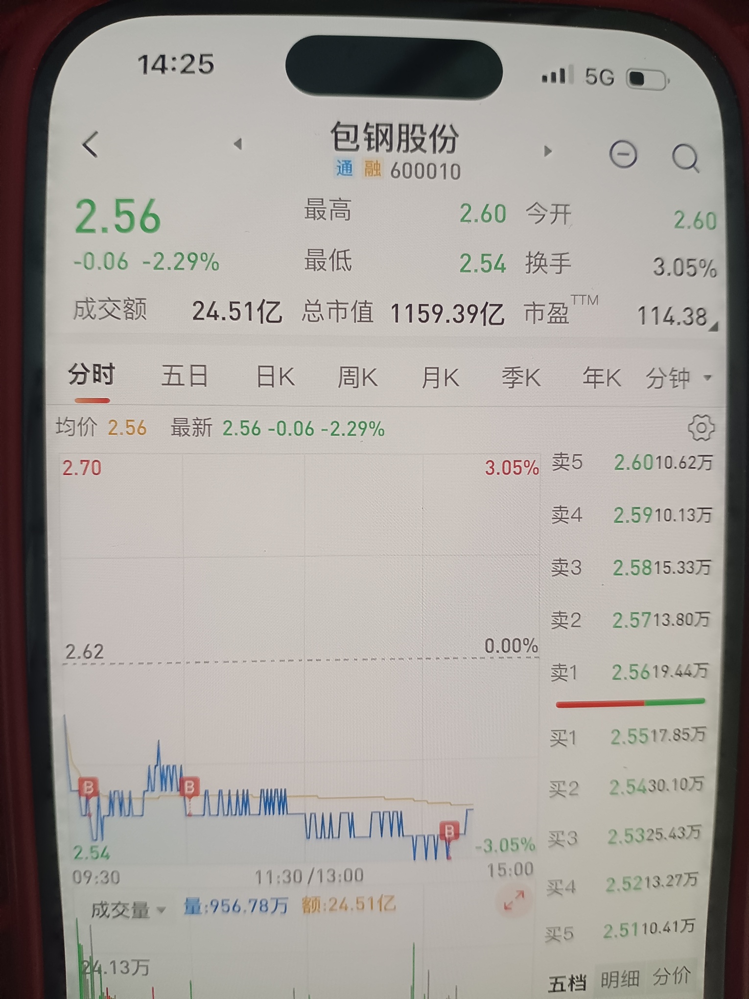 $包钢股份(SH600010)$ 今天运气好,2.54买单也成交了。今天看来没有卖的机会了,只能逢低买入了。