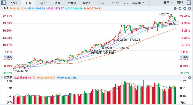 指数经过连续三天调整后,我判断今天大概率会有一波明显反抽,但上方4000点压制力不小。昨天市场已经显现出大小分化的特征,结合当前两万亿左右的成交量,短期内市场大概率还是维持箱体震荡格局。市场风格切换后,低位板块虽已有赚米效应,但千万别看到前期调整后的板块到了“看似合适”的位置就急着下手——震荡市中,盲目冲动很容易被套。