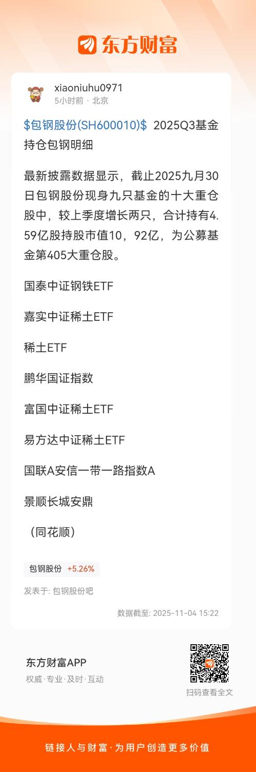 $包钢股份(SH600010)$ 2025Q3基金持仓包钢明细