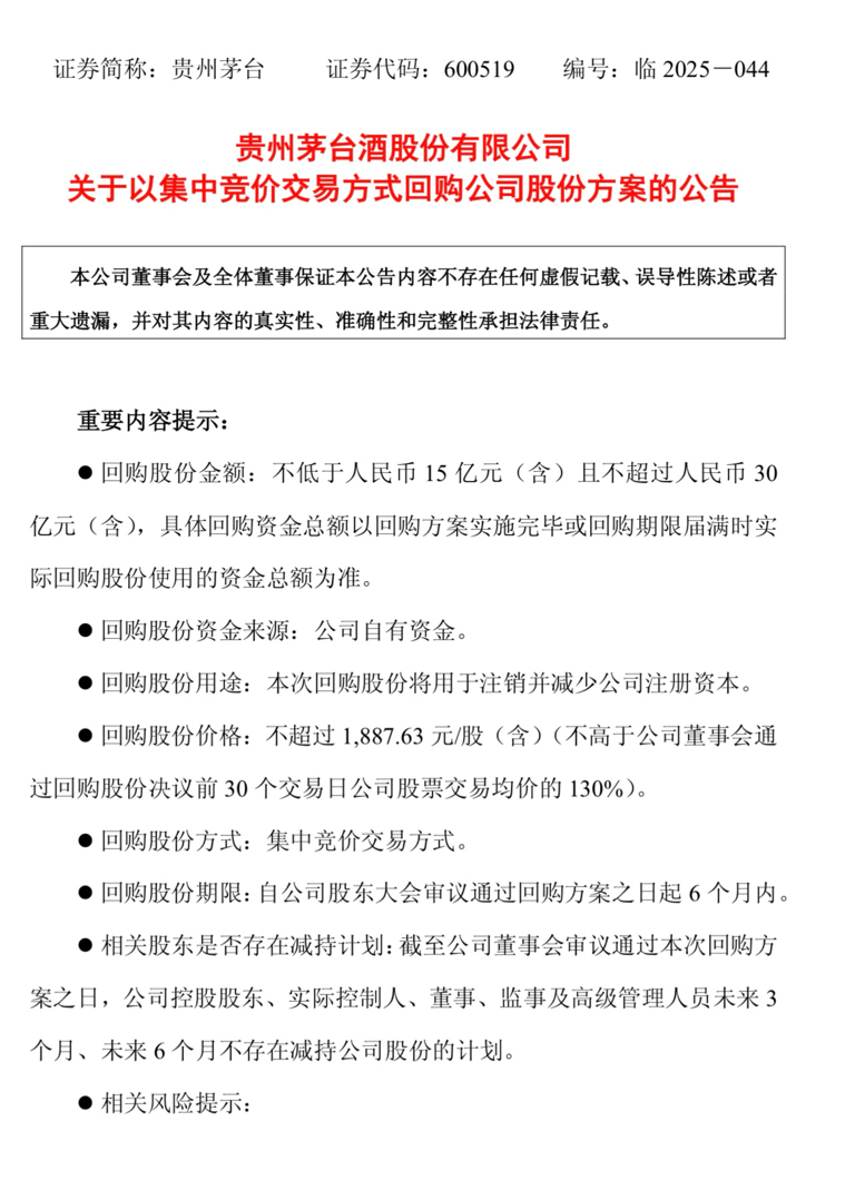 $包钢股份(SH600010)$ 茅台也公告了回购注销,看看价格走势如何?