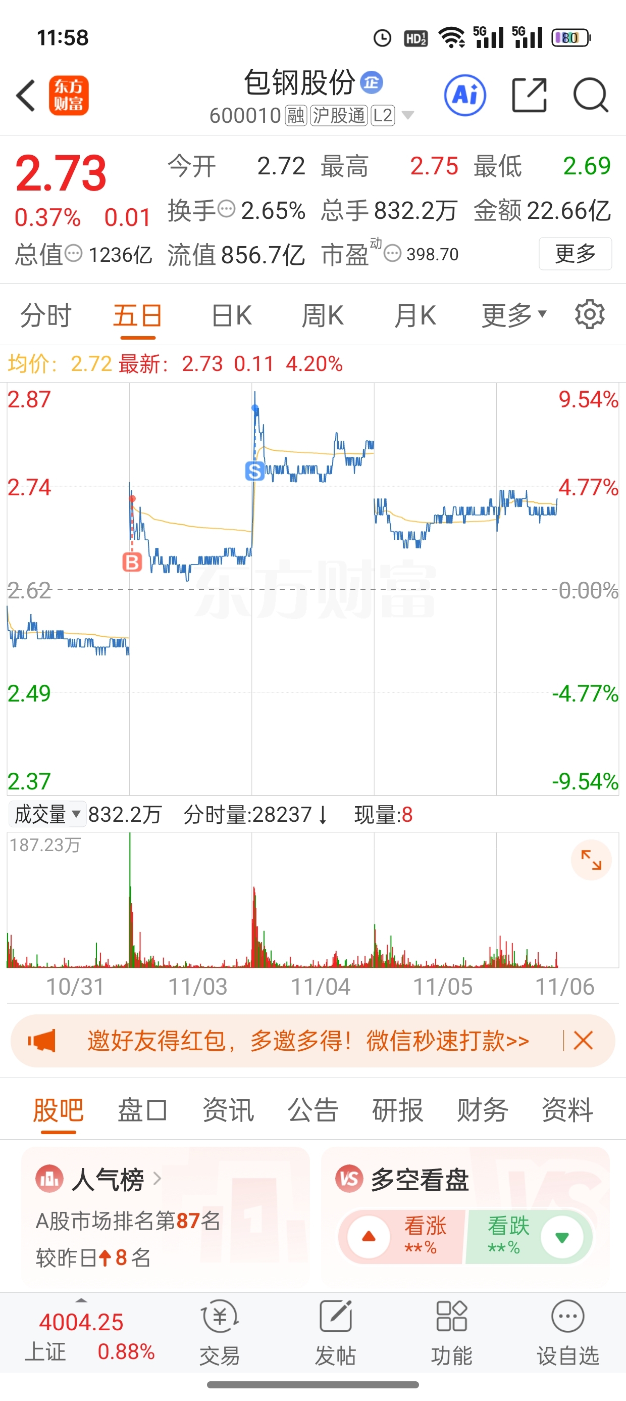 $包钢股份(SH600010)$ 还好高点走了今天回来一看,真上#炒股日记# 火
