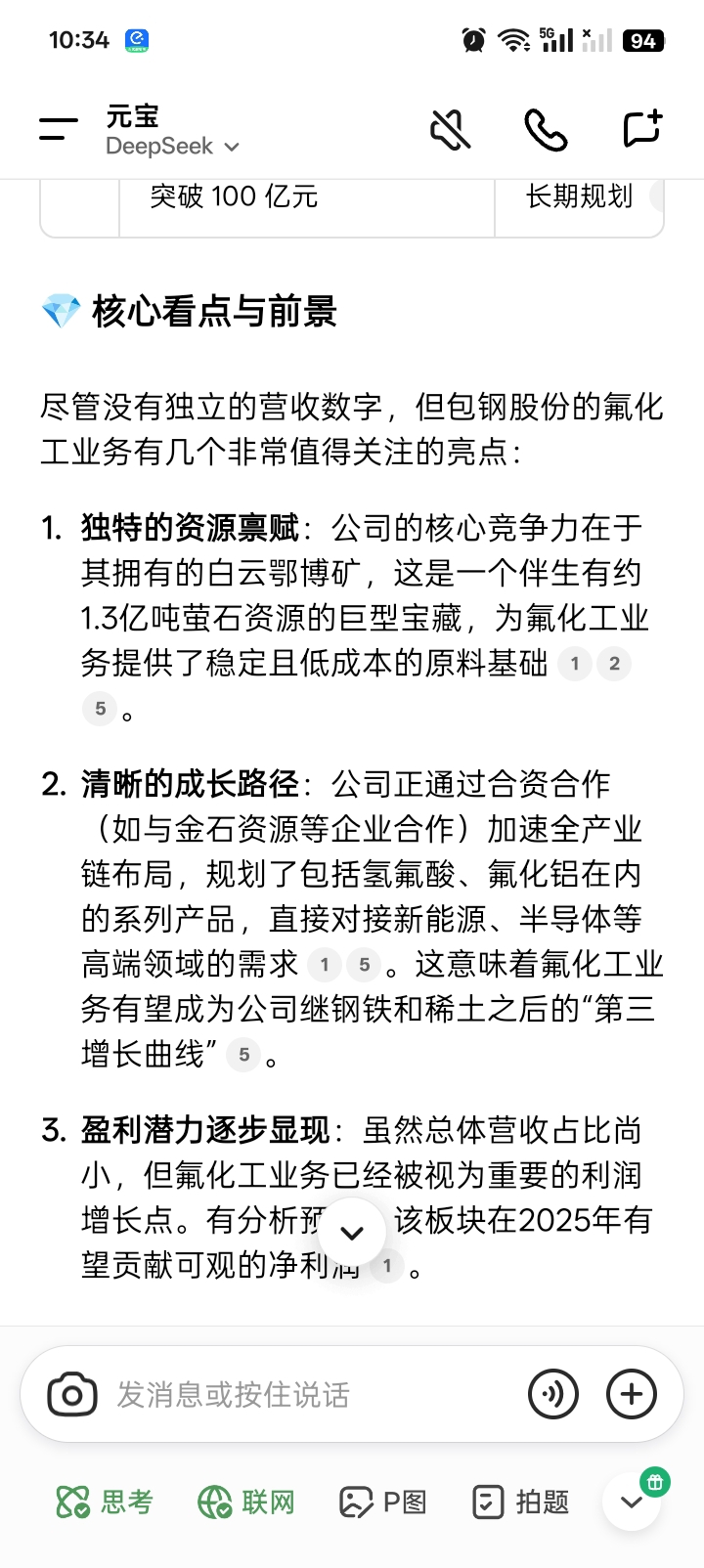 $包钢股份(SH600010)$ 萤石是氟化工的基本原材料白云鄂博矿区又一个萤石世界第一!成本优势相当大未来规划清晰氟化工将成为包钢股份继钢铁、稀土第三产业,放眼未来氟化工将贡献的利润将达数十亿或将超百亿!