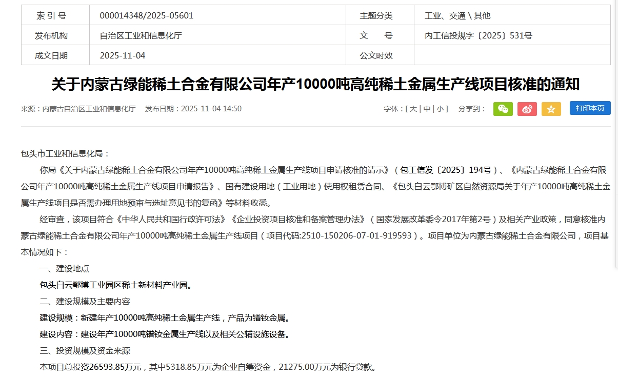 内蒙古绿能稀土合金有限公司由包钢集团持股48.98%,包钢股份持股46.02%,