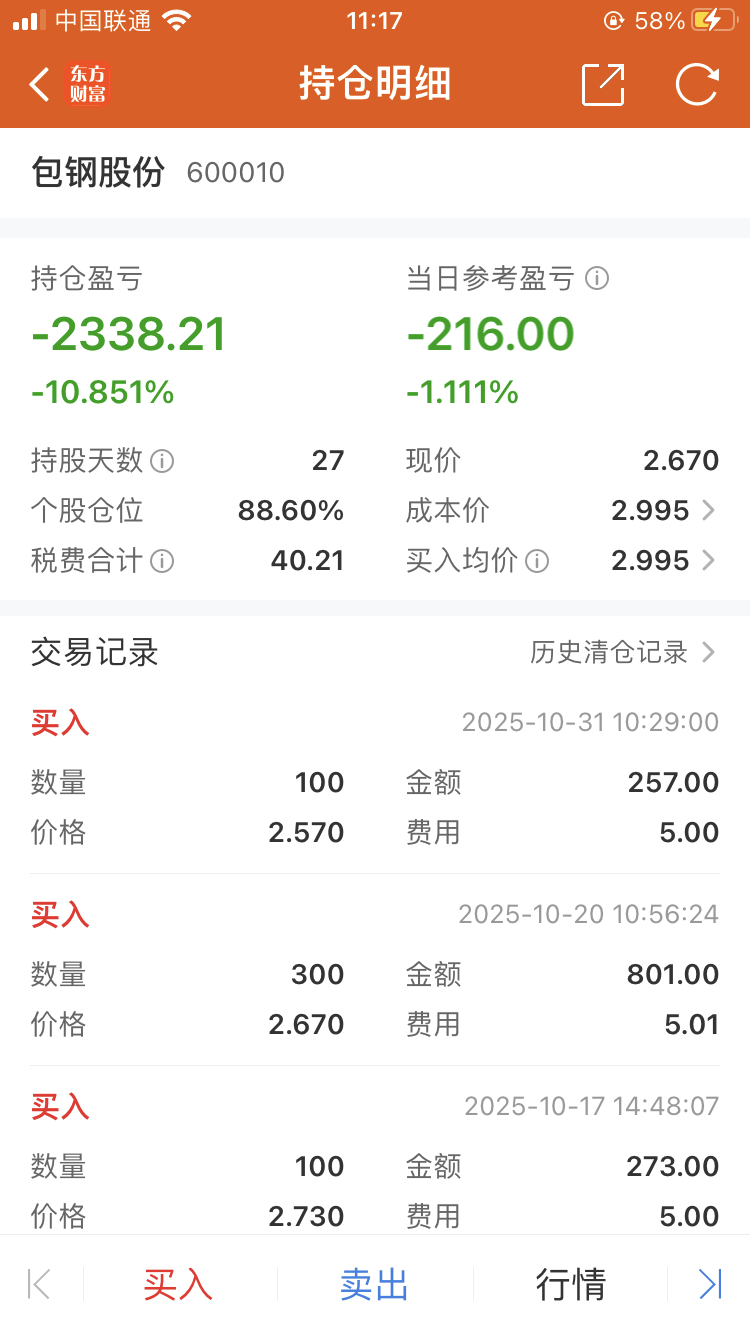 $包钢股份(SH600010)$ 7200股,3块钱的成本