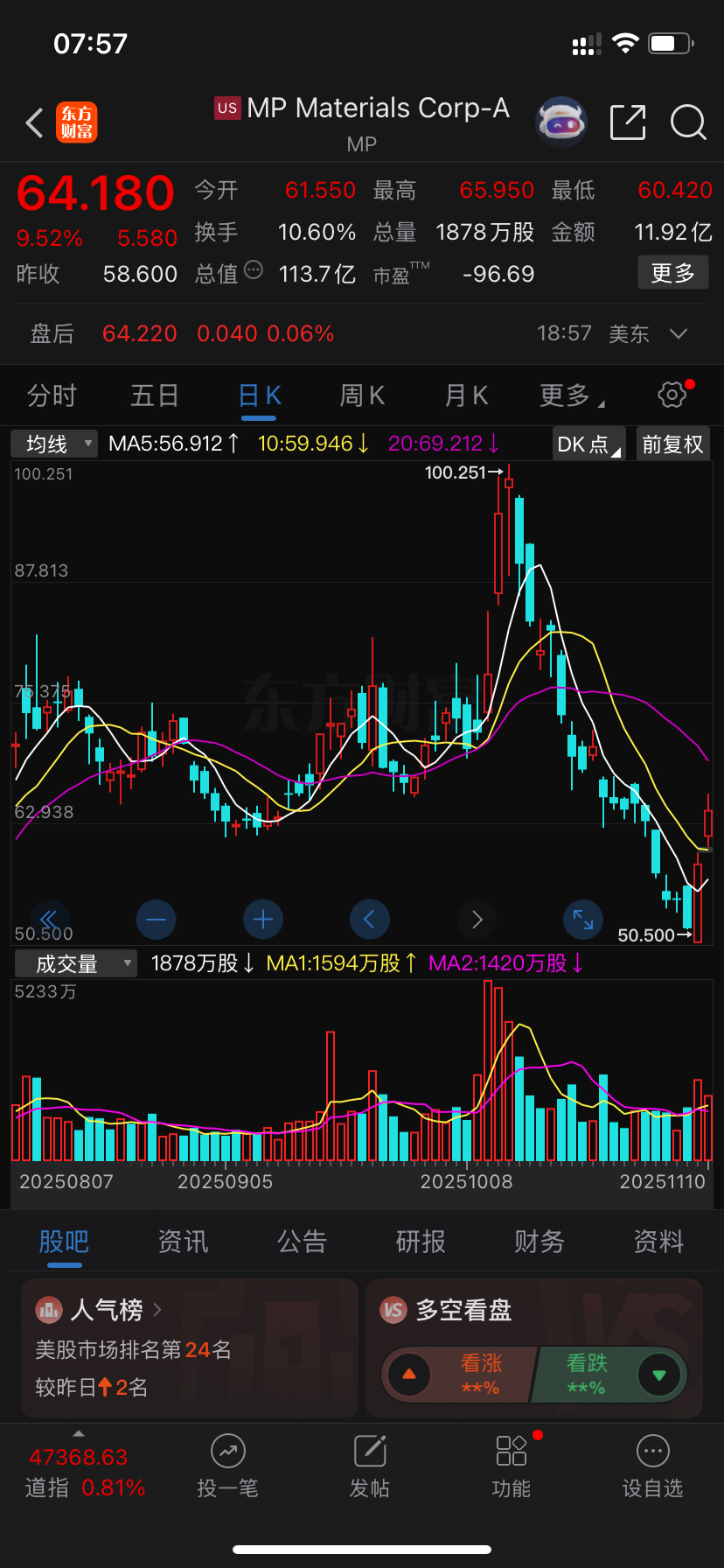 美股稀土两天涨幅高达23%,包钢股份今天补涨涨停