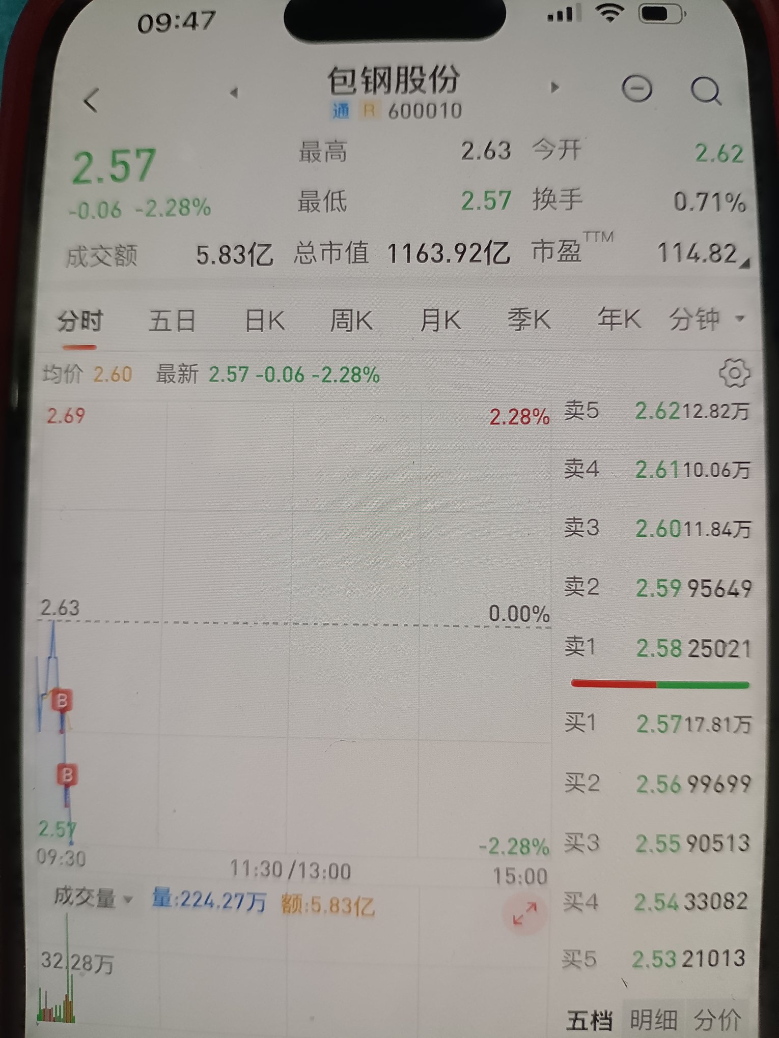 $包钢股份(SH600010)$ 2.6主力砸盘了,我的单子也成交了。形势严峻。