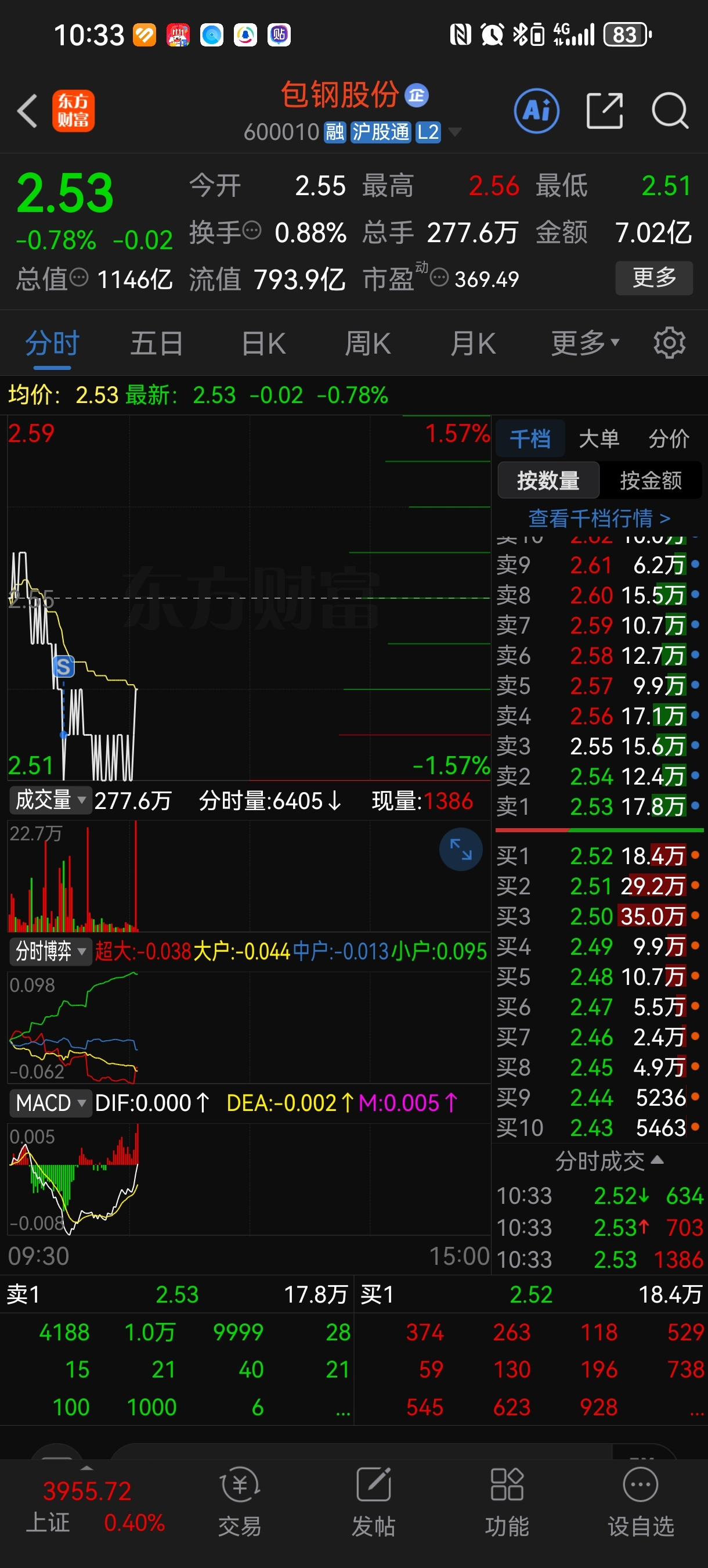 $包钢股份(SH600010)$ #炒股日记# 破位清仓离场,休息一下,我和有些节点犯冲,我不走就深跌,一走就反弹