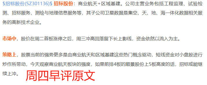 市场中表现来看,今日商业航天板块回流,招标股份低开高走拉出大阳线,日内反包强劲。