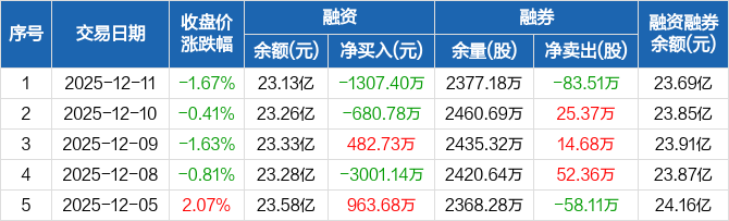 包钢股份:融资净偿还1307.4万元,融资余额23.13亿元(12-11)