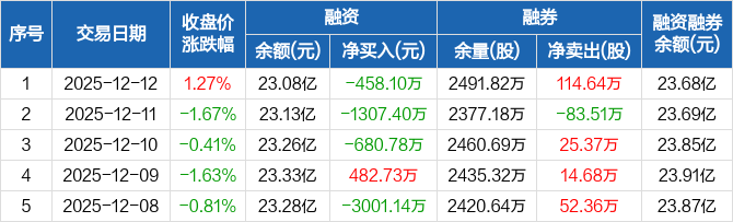 包钢股份:连续3日融资净偿还累计2446.28万元(12-12)