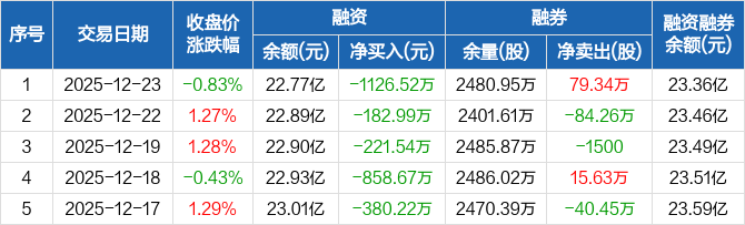 包钢股份:连续5日融资净偿还累计2769.94万元(12-23)