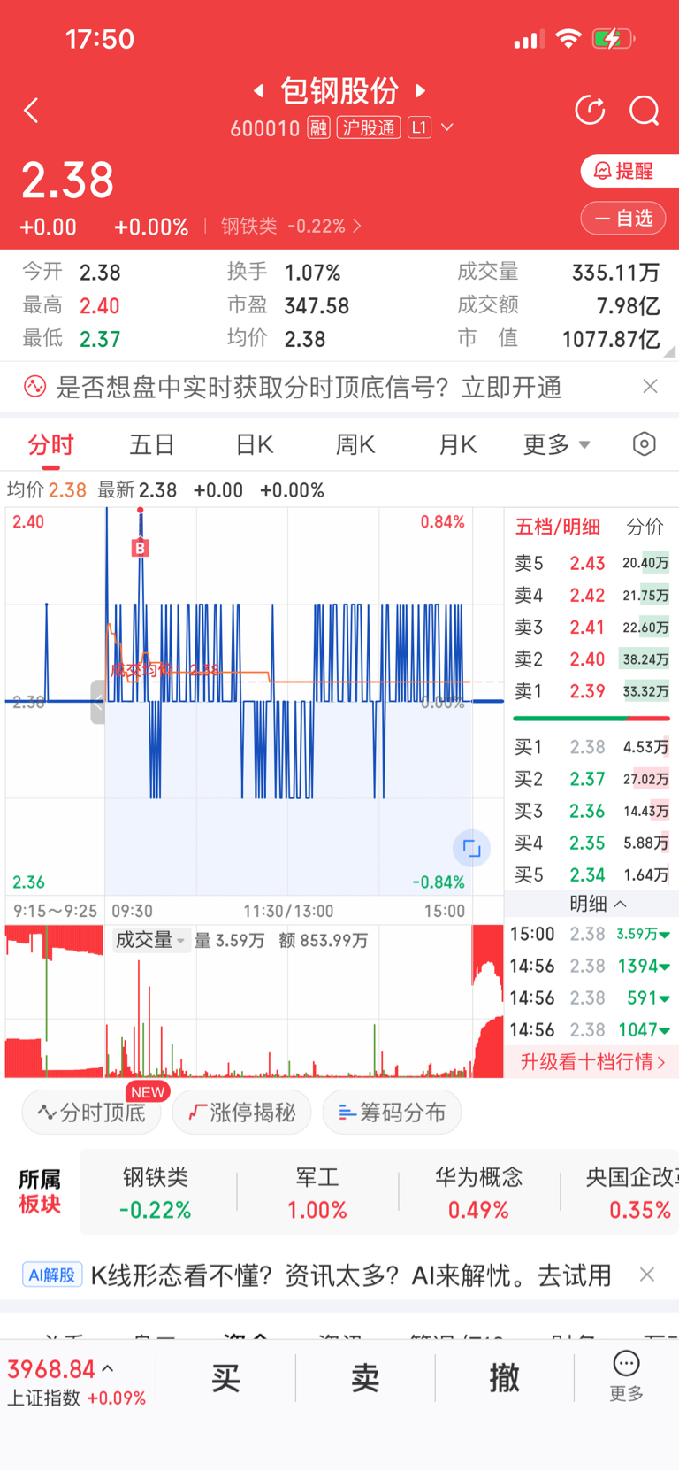 $包钢股份(SH600010)$ 2.4看见买单一激动就被骗进来了!以为今天拉稀土