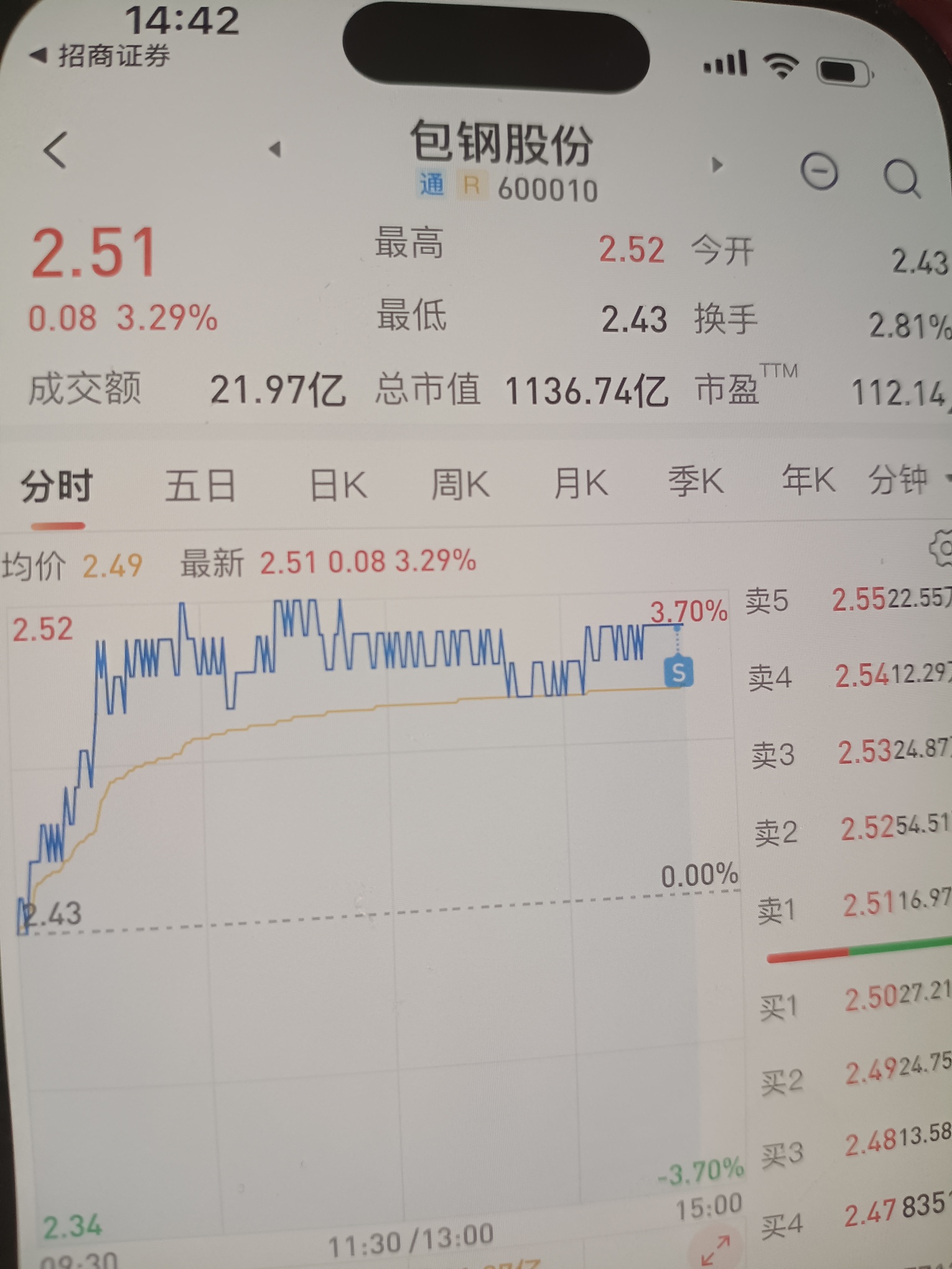 $包钢股份(SH600010)$ 2.52到缺口位置了,可能要震荡整理几天,高抛低吸开始了。今天先卖。