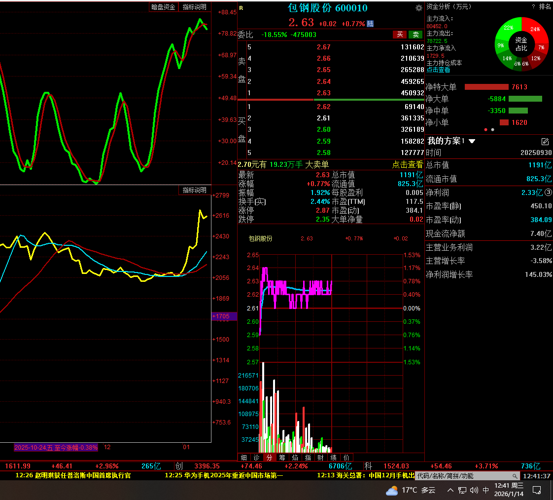 0114星期三 包钢股份 主力动向