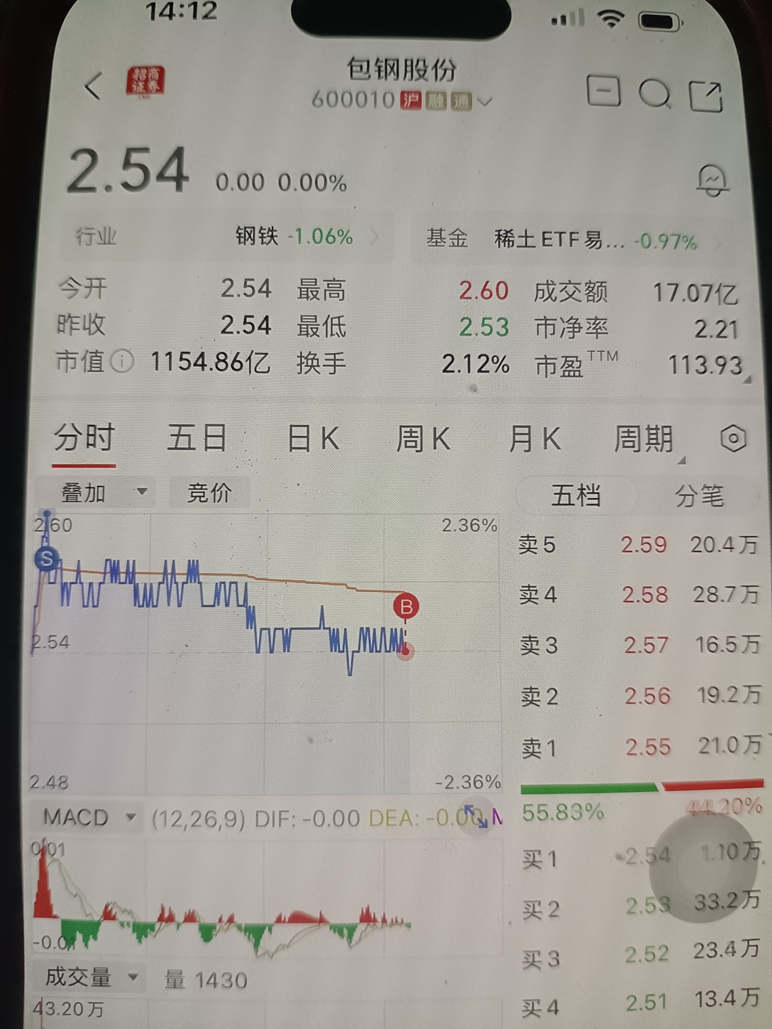 $包钢股份(SH600010)$ 高抛低吸2.54又买回来了。