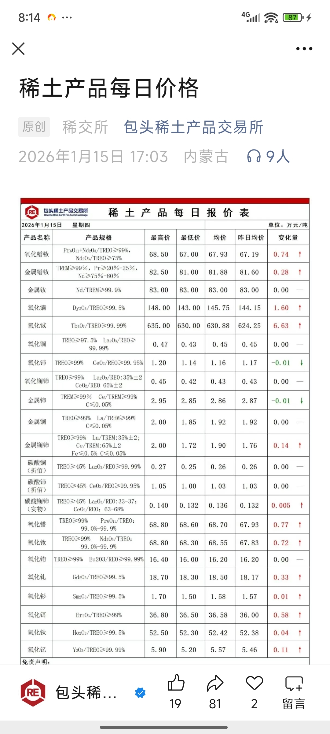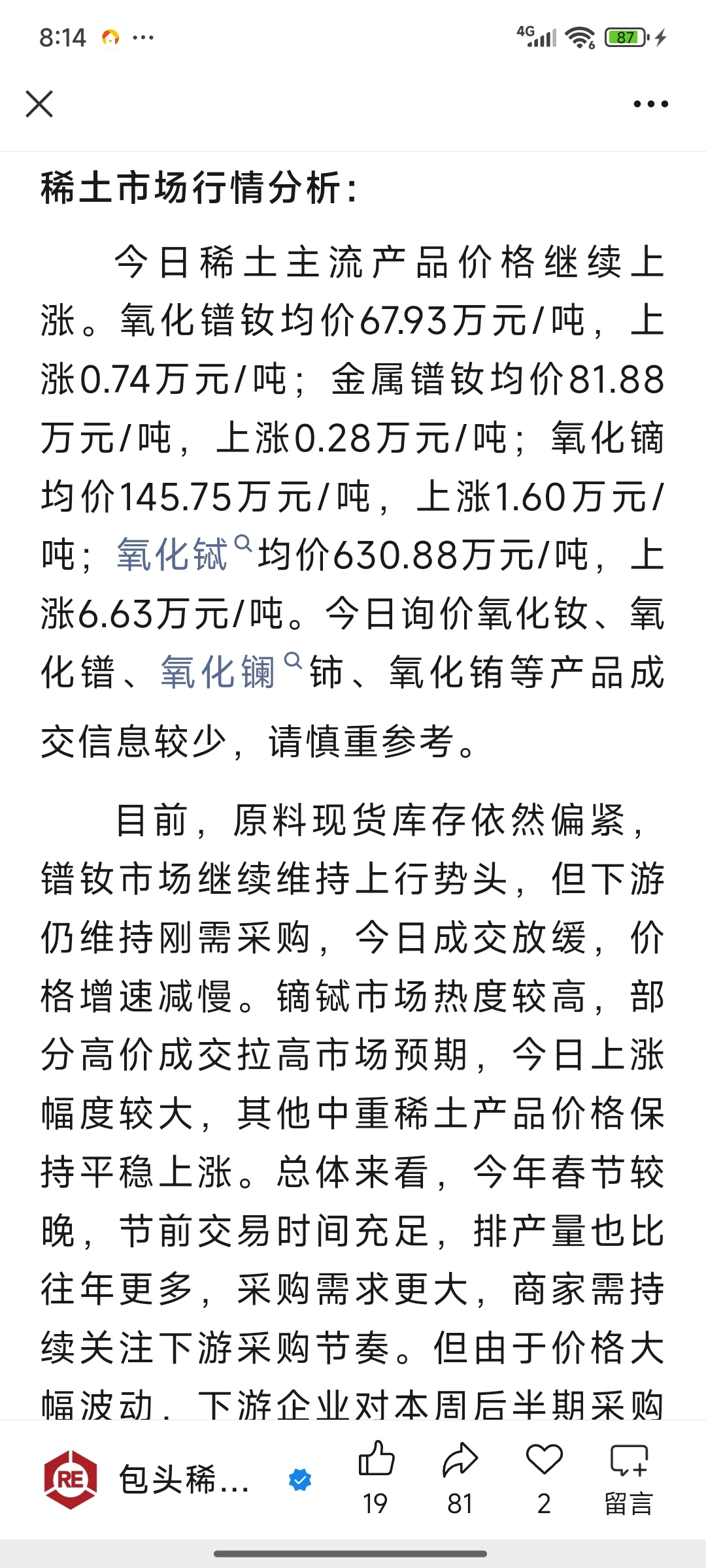 今日稀土价格继续大涨!