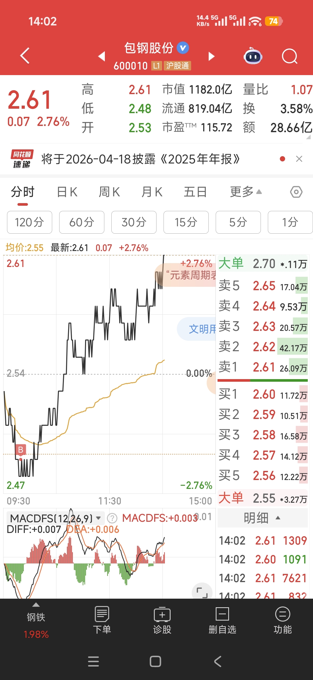 $包钢股份(SH600010)$ 相信大数据了一次 第一回无脑入