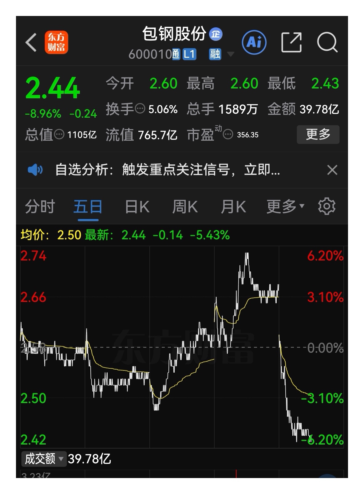 2.44元的包钢股份: 公司主要产品有稀土精矿、萤石精矿等矿产品。还有氟化工,稀土钢,钍资源,铌资源等等。稀土——国家战略稀缺资源!暴跌后必有暴涨!