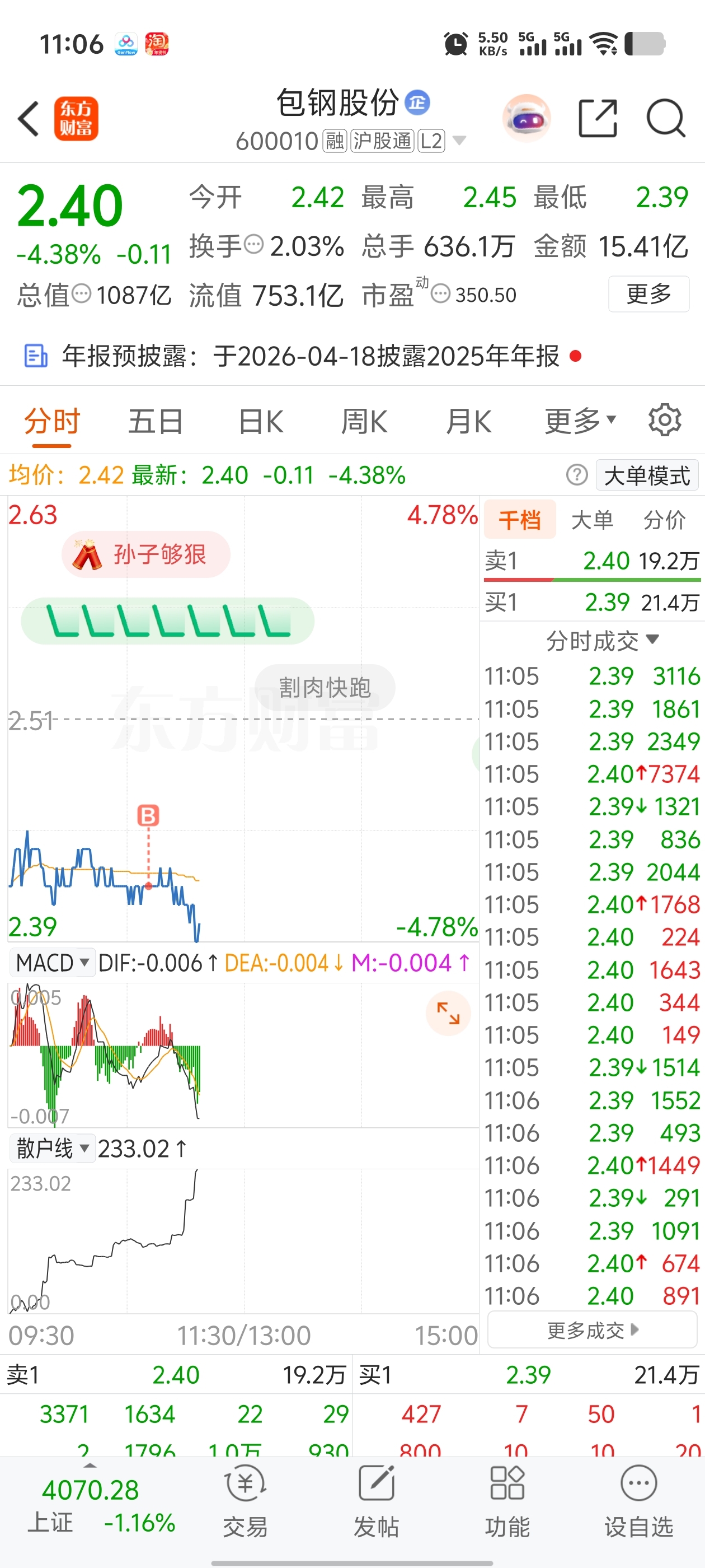 $包钢股份(SH600010)$ 我就那点三瓜两枣的,一来就50万手砸下来