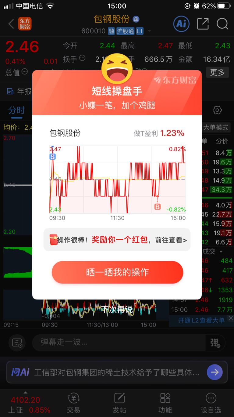 $包钢股份(SH600010)$ 涨一分也是爱,做个T搞三分,降低成本,慢慢熬呗!