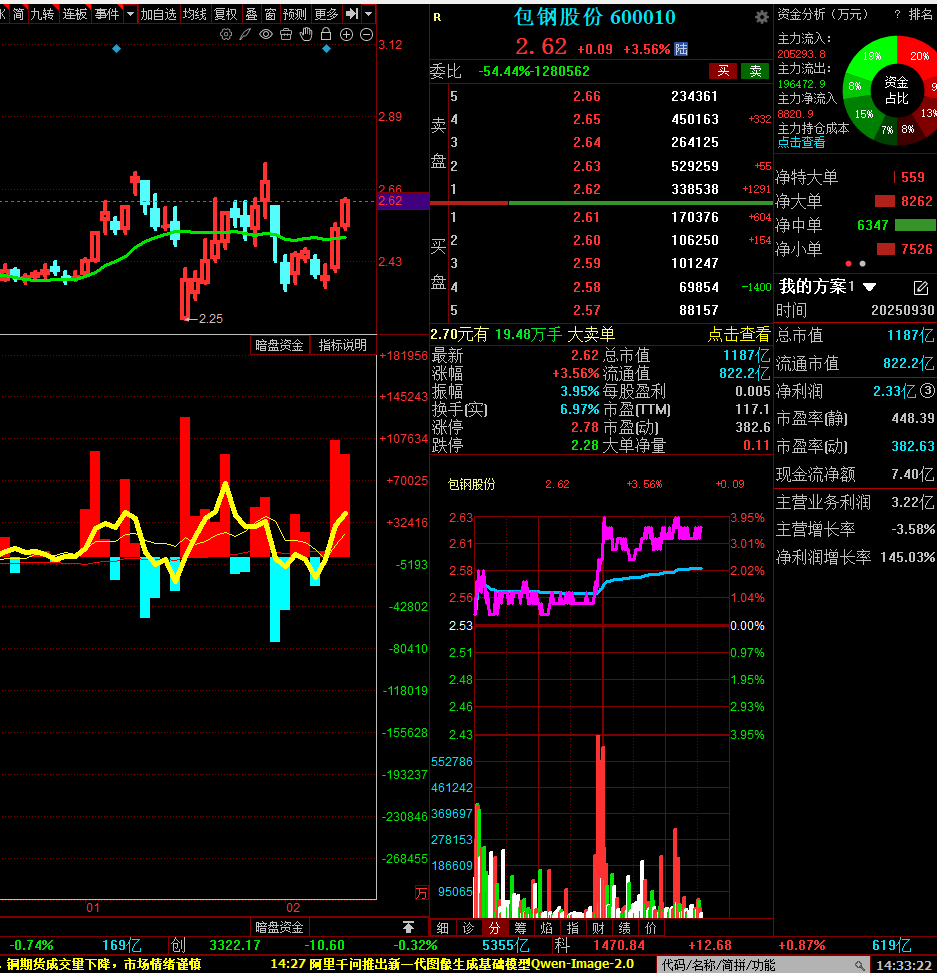 明暗资金大幅流进 包钢股份