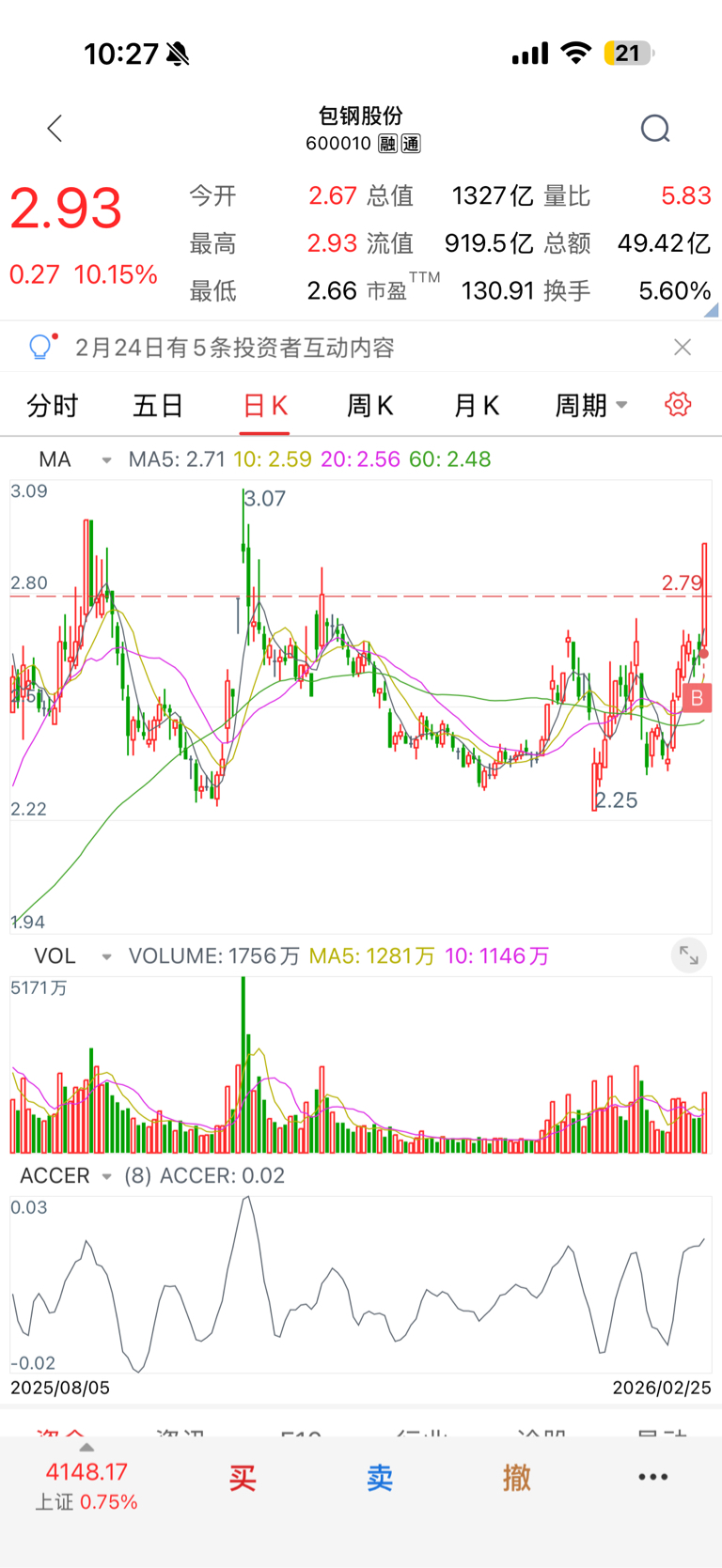 $包钢股份(SH600010)$ 封单五六十亿,明天一字连板?