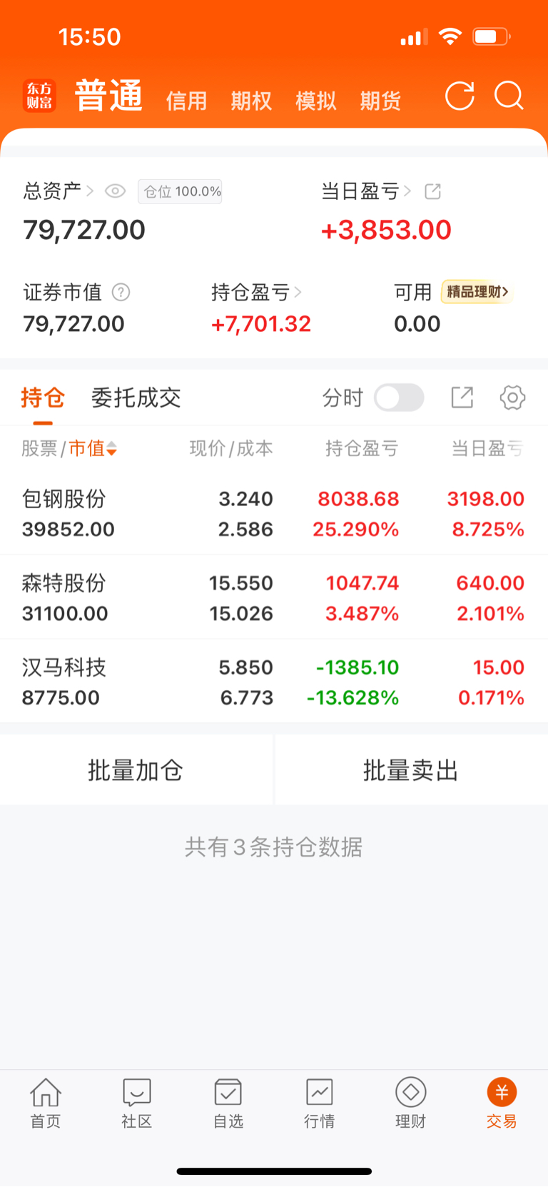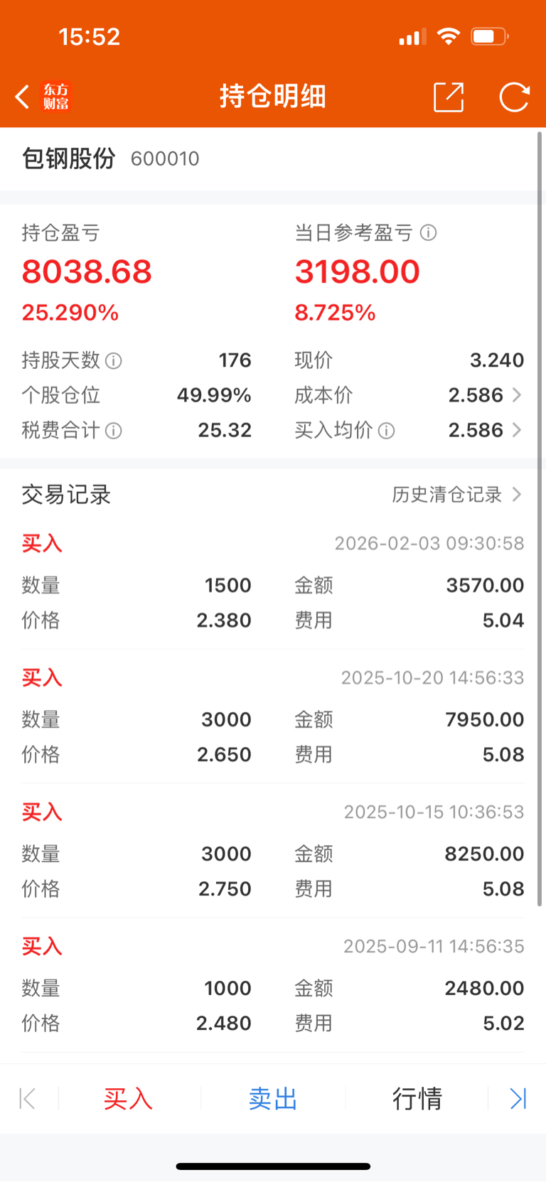 持股半年,这次突破前高站稳3块,再来发个帖。今年还不错,小7年前回撤不少,包钢补了不少利润,总体前二个月获利5个左右,期待今年超过去年。包钢从建仓到现在刚好半年,到哪里不去猜,跟随就好!个人认为就是价值回归,拿好就是