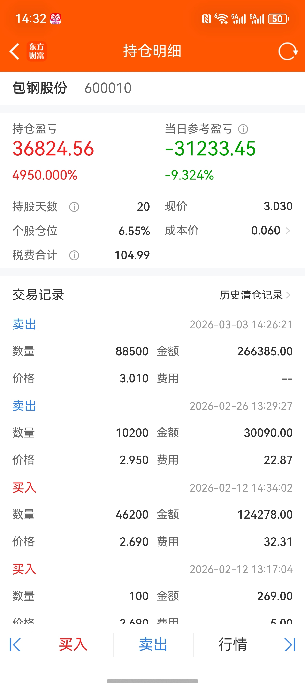 $包钢股份(SH600010)$ 留一万两千多股,其他撤了,保本第一