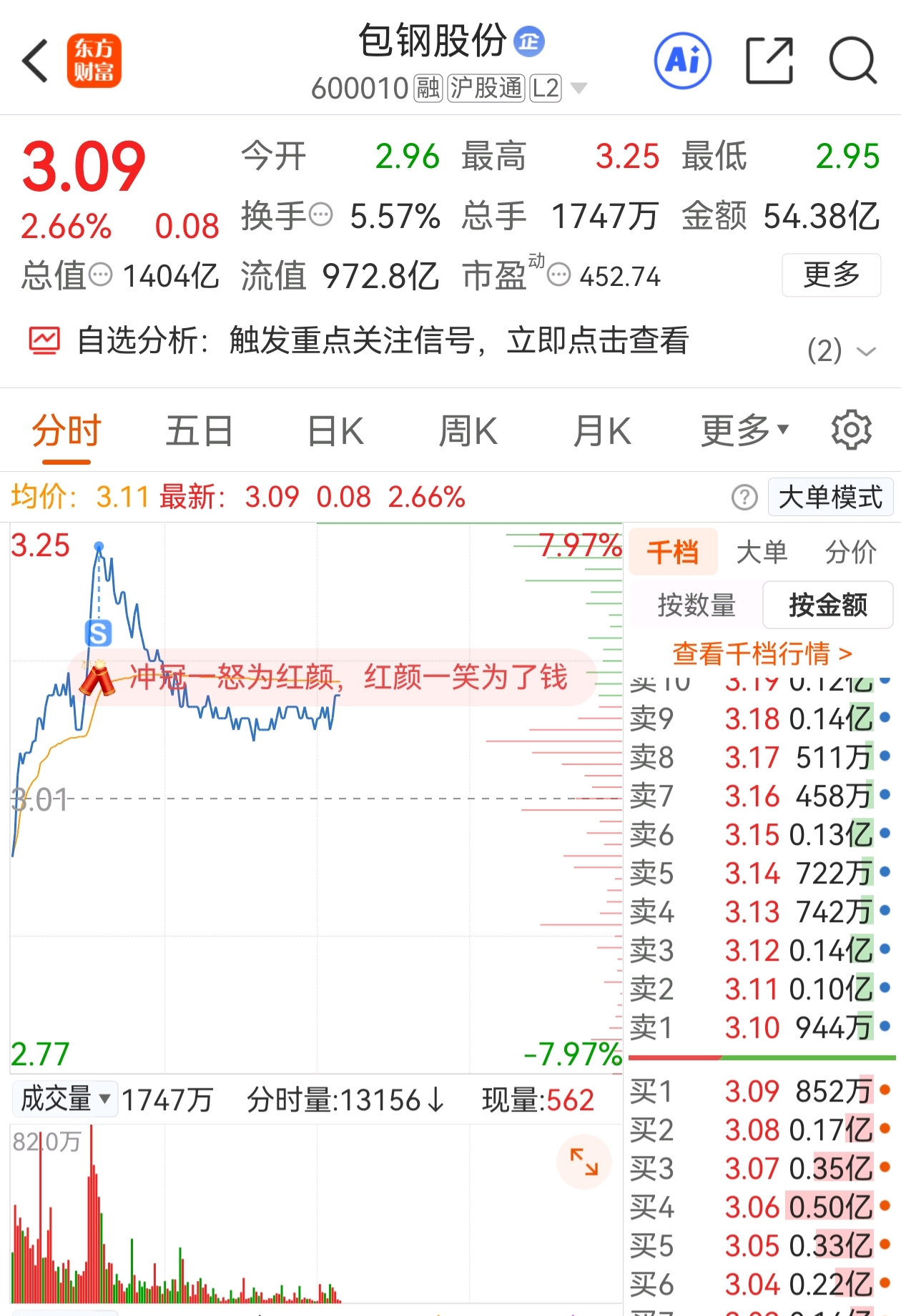 $包钢股份(SH600010)$ 真的应该全部卖掉。今天最高点全部卖掉,也算不亏本了。只卖1/3,现在又开始亏了。