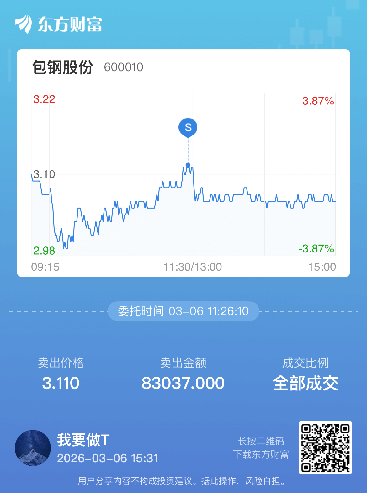 温馨提示: 1.根据《证券法》规定,禁止编造、传播虚假信息或者误导性信息,扰乱证券市场;2.用户在本社区发表的所有资料、言论等仅代表个人观点,与本网站立场无关,不对您构成任何投资建议。用户应基于自己的独立判断,自行决定证券投资并承担相应风险。《东方财富社区管理规定》