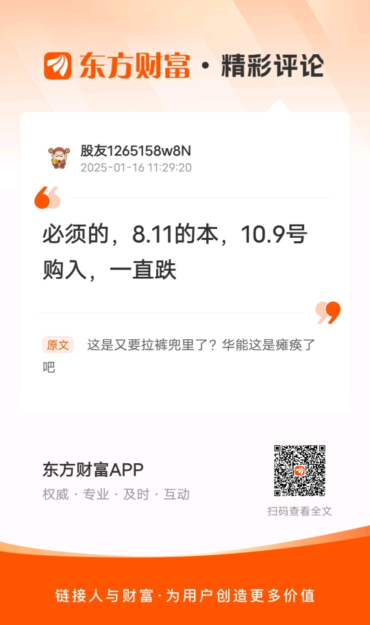 温馨提示: 1.根据《证券法》规定,禁止编造、传播虚假信息或者误导性信息,扰乱证券市场;2.用户在本社区发表的所有资料、言论等仅代表个人观点,与本网站立场无关,不对您构成任何投资建议。用户应基于自己的独立判断,自行决定证券投资并承担相应风险。《东方财富社区管理规定》