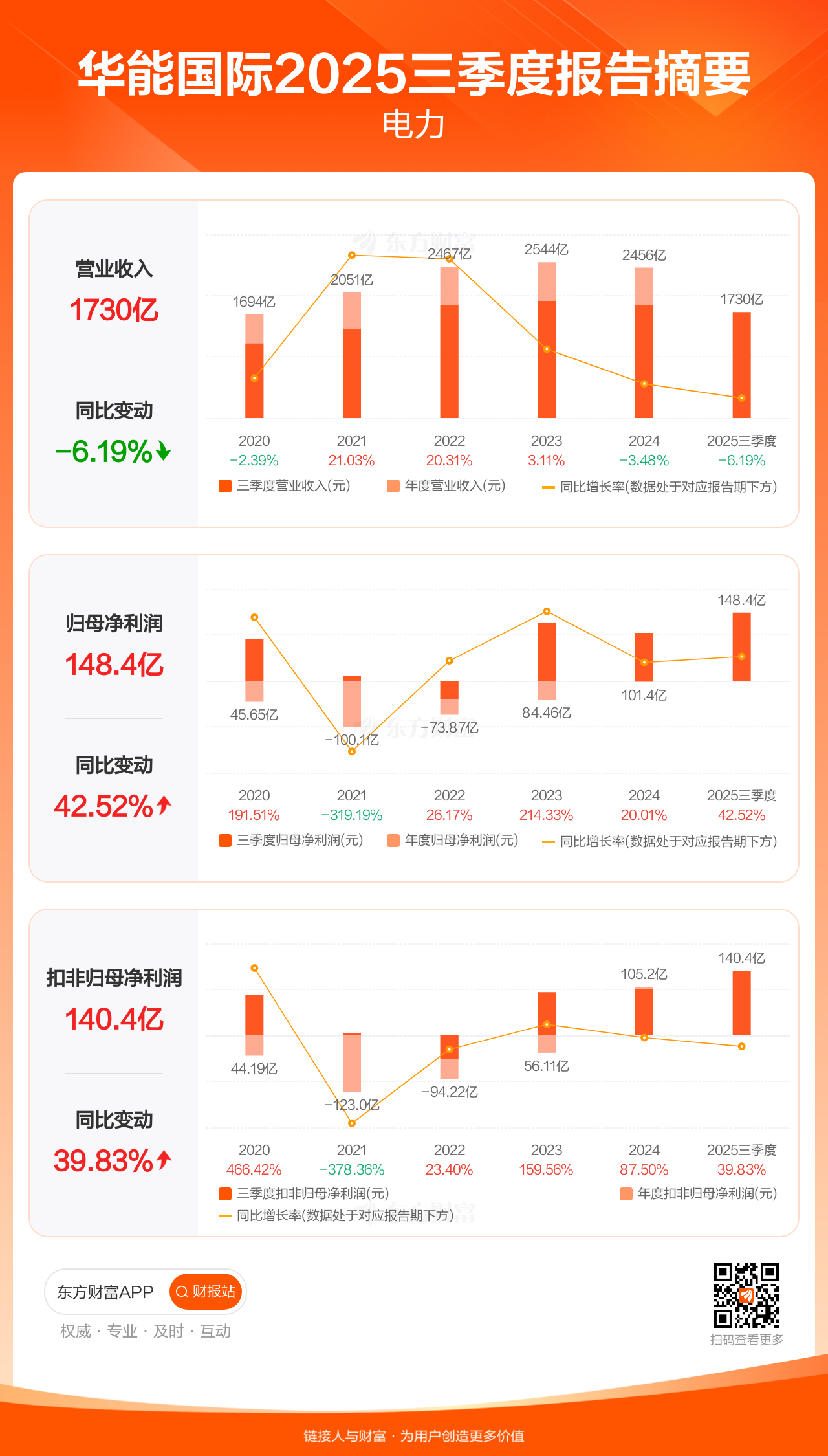 图解财报:华能国际前三季归母净利润148.41亿元,同比增长42.52%